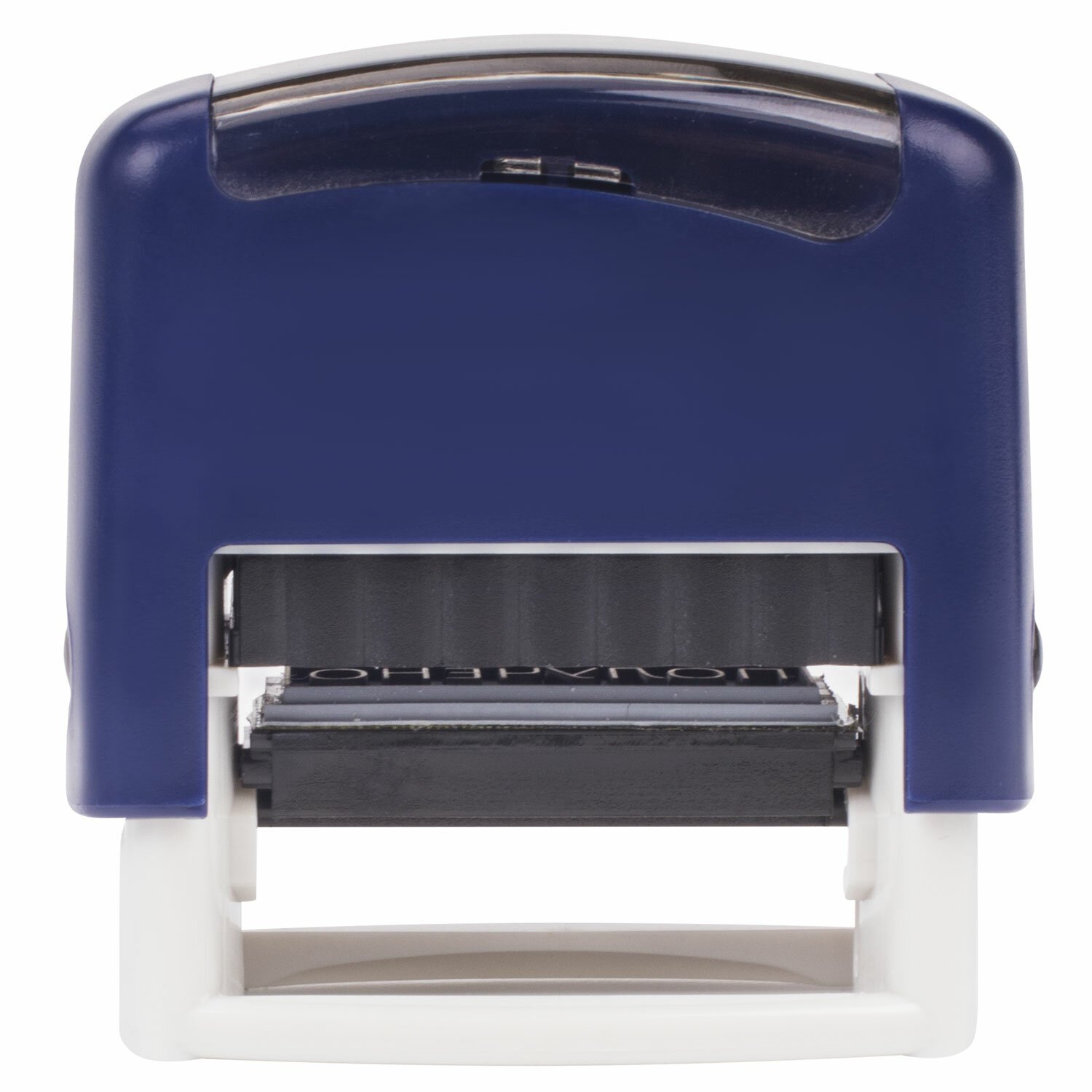 Клише штампа оставляет оттиск размером 38х14 мм синего цвета. Корпус изготовлен из качественного износоустойчивого пластика. Верхняя часть корпуса выполнена в темно-синем цвете, а нижняя часть – в светло-сером. Надежные фиксаторы, располагающиеся по бокам, позволяют удерживать подвижную часть штампа в статичном положении. В специальном прозрачном окне на верхней части корпуса располагается образец текста для его идентификации в процессе использования штампа. Замена подушки не составляет труда. На механизм распространяется пожизненная гарантия. Срок годности сменной подушки составляет 6 лет (дата изготовления указана на упаковке).