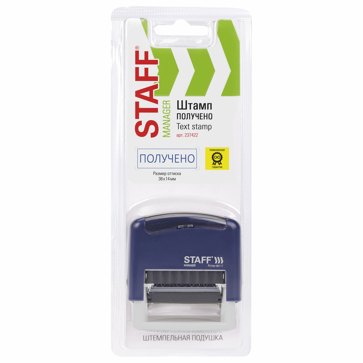 Штамп стандартный STAFF "ПОЛУЧЕНО", оттиск 38х14 мм, "Printer 9011T", 237422