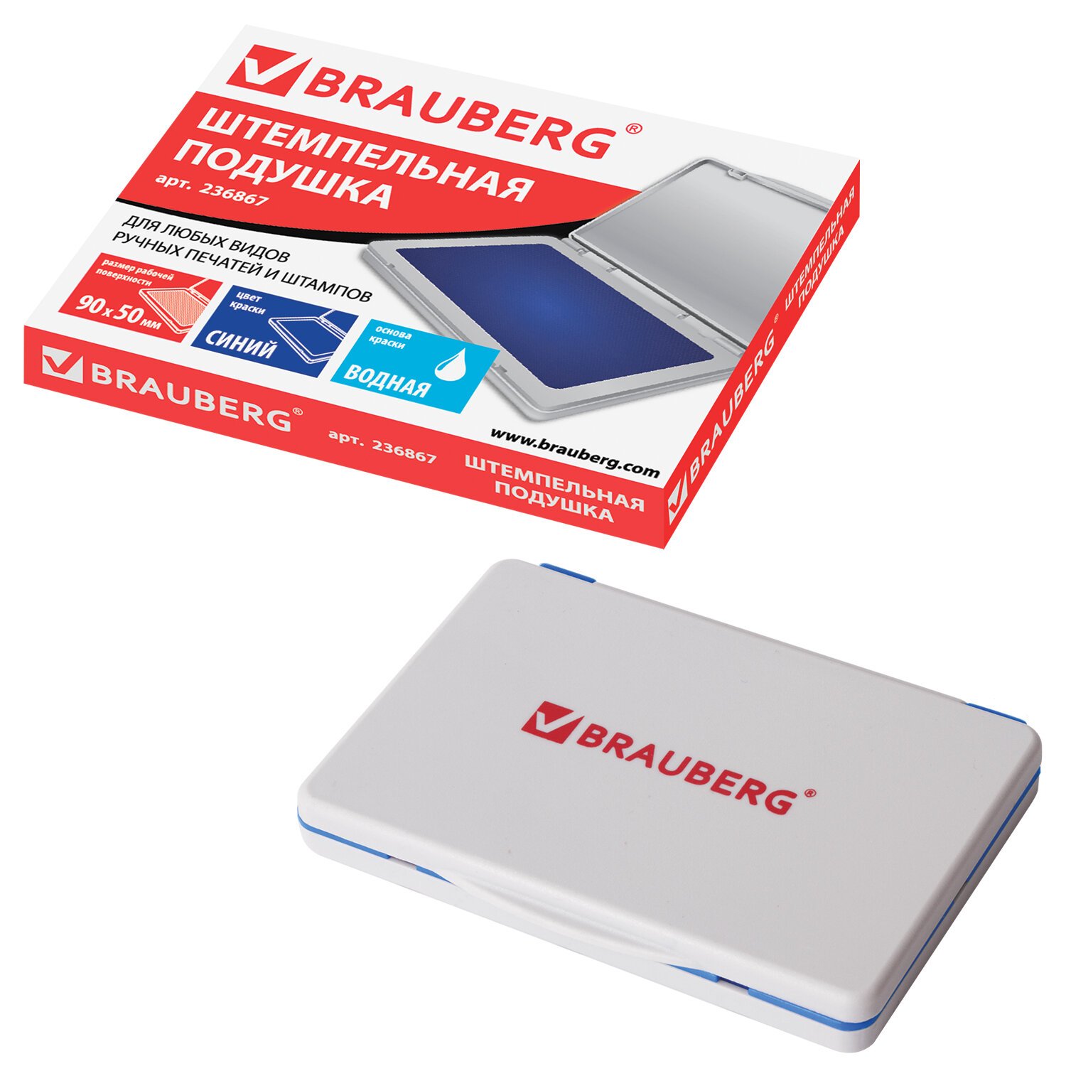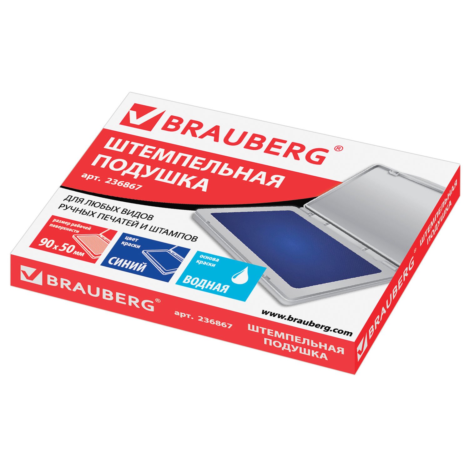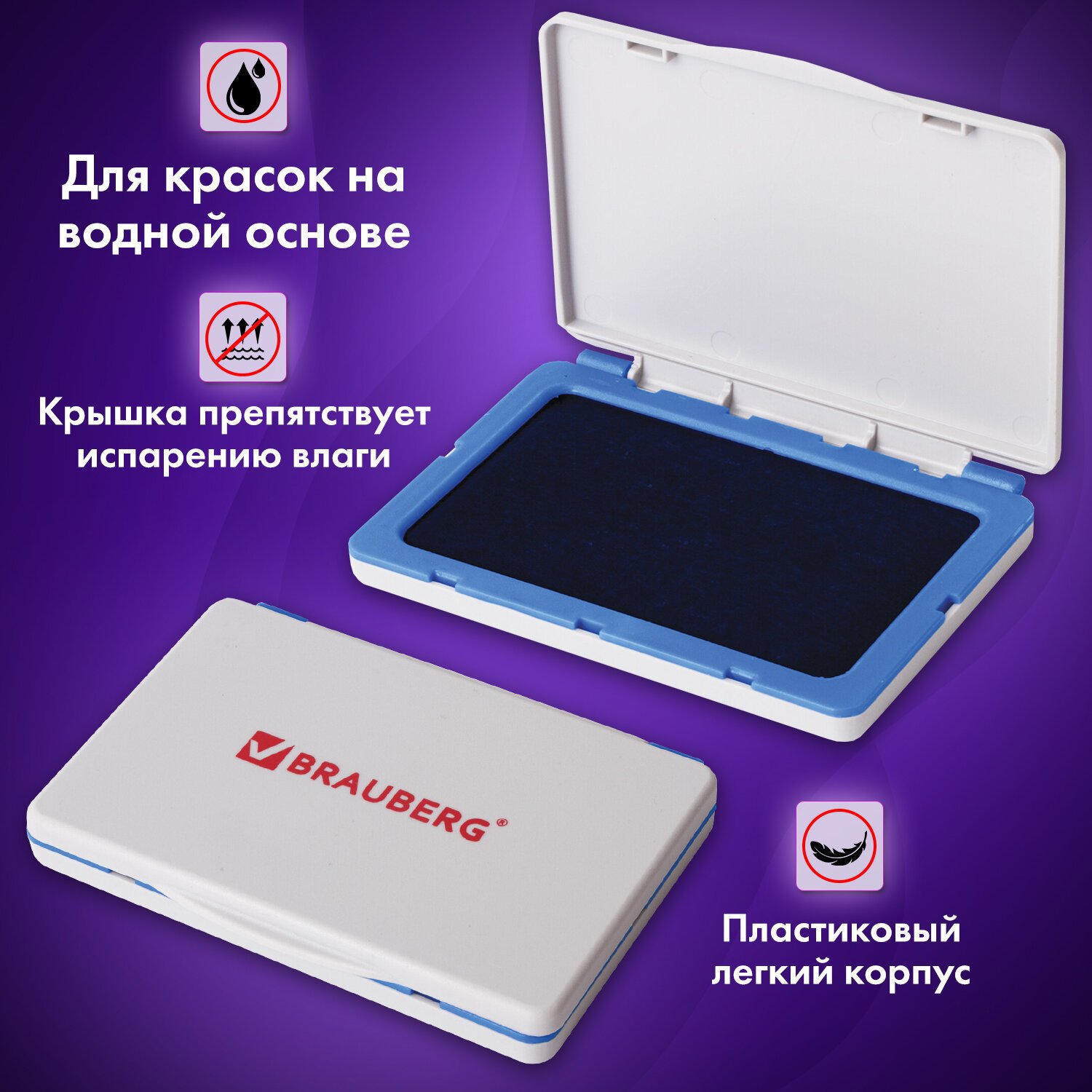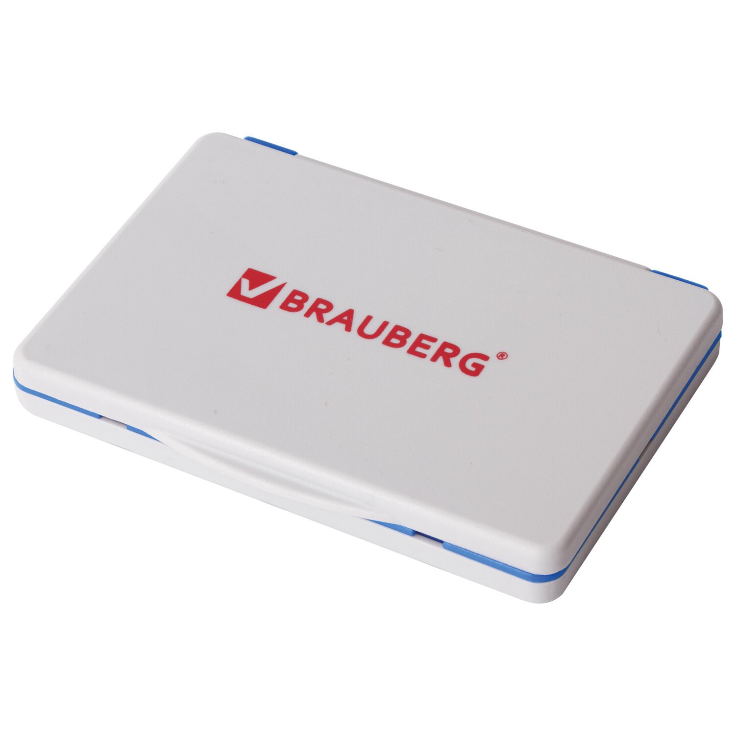 Штемпельная подушка BRAUBERG, 100х80 мм (рабочая поверхность 90х50 мм), синяя краска, 236867