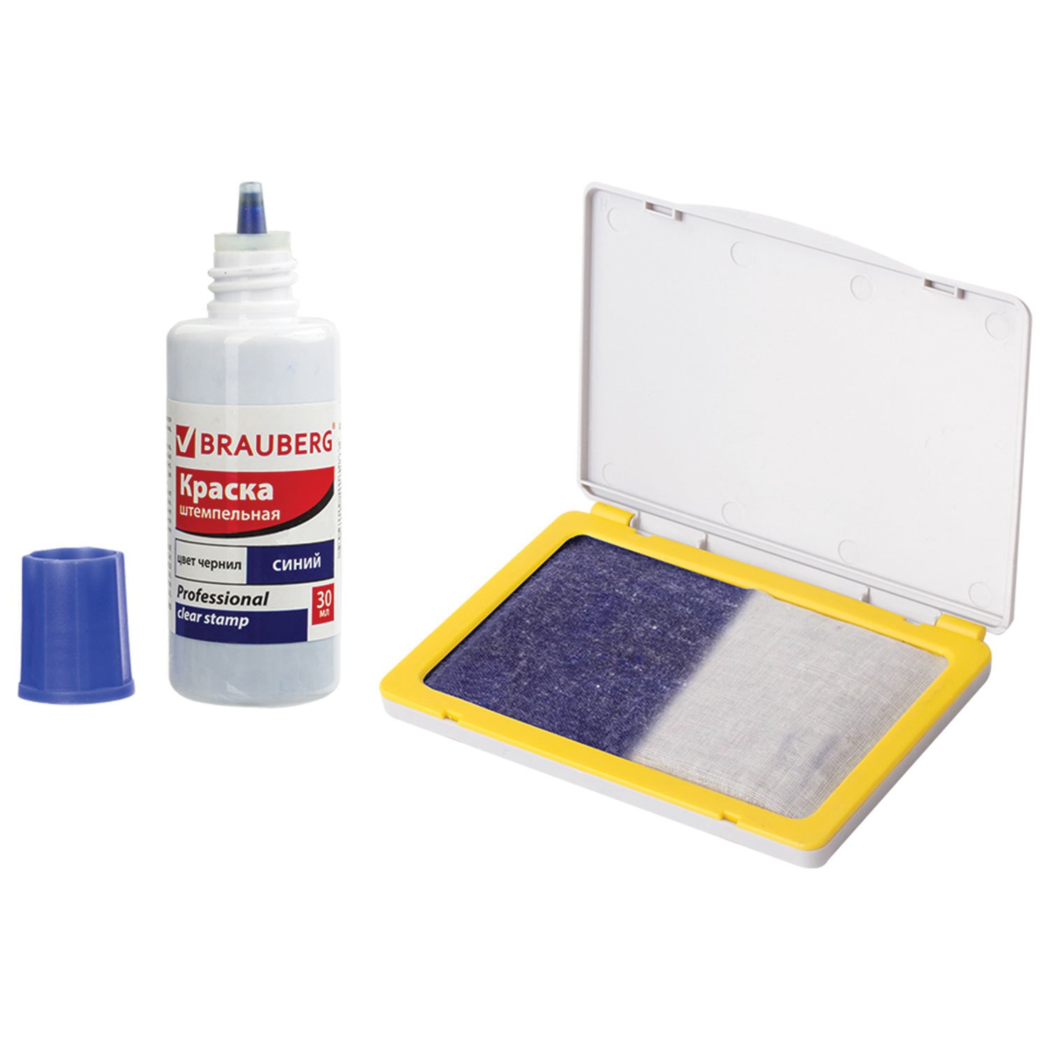 Краска штемпельная BRAUBERG PROFESSIONAL, clear stamp, синяя, 30 мл, на водной основе, 227981