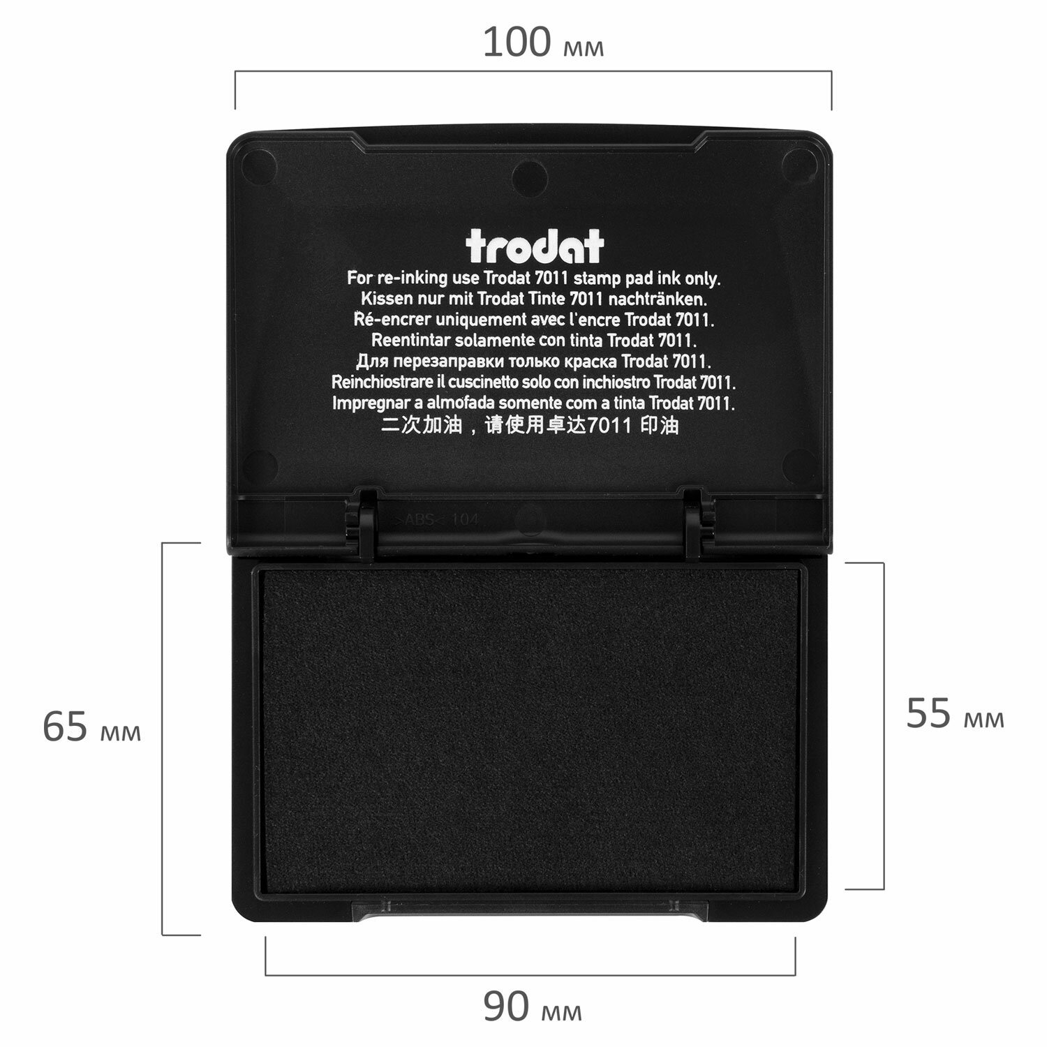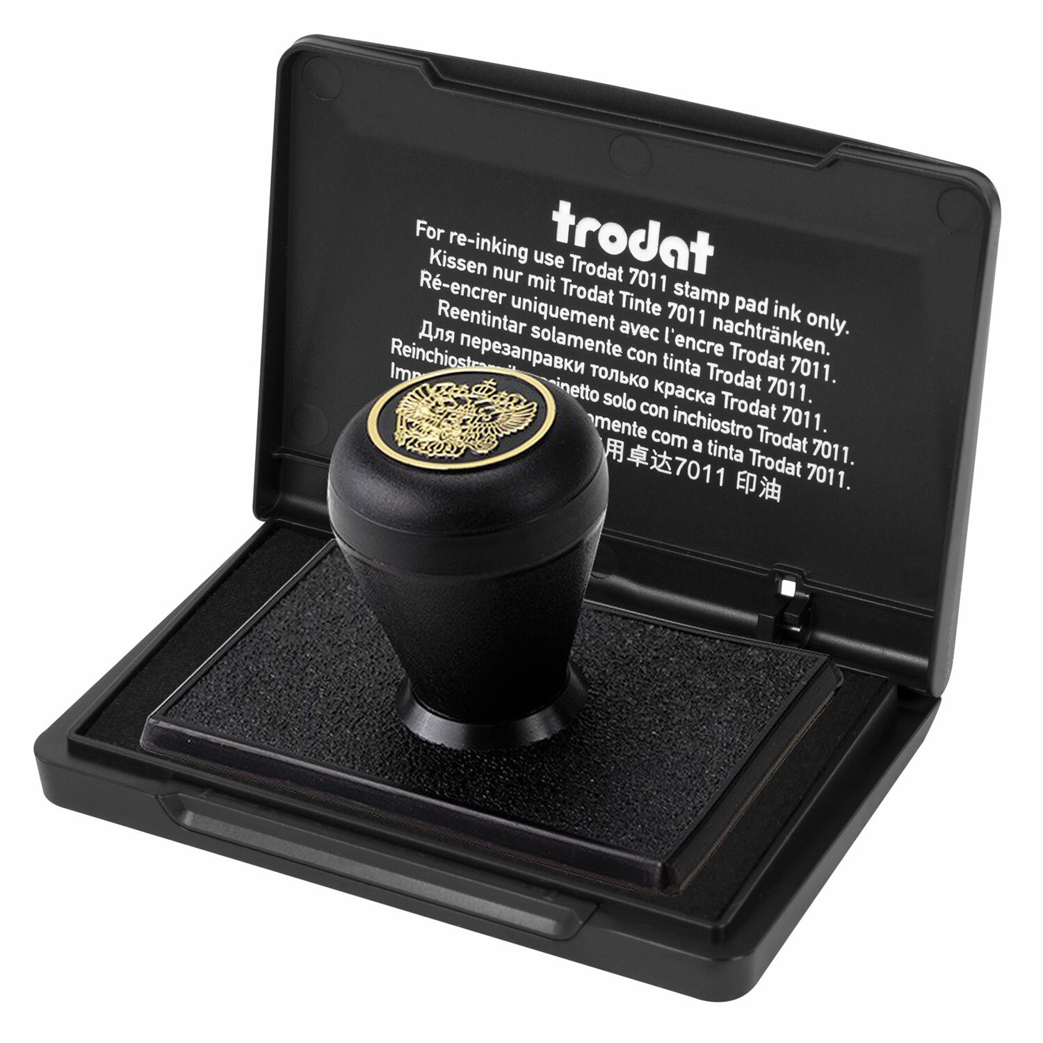 Штемпельная подушка заправлена краской TRODAT. Подходит для всех типов ручных печатей с полимерным и резиновым клише. Обеспечивает десятки тысяч оттисков без дозаправки.