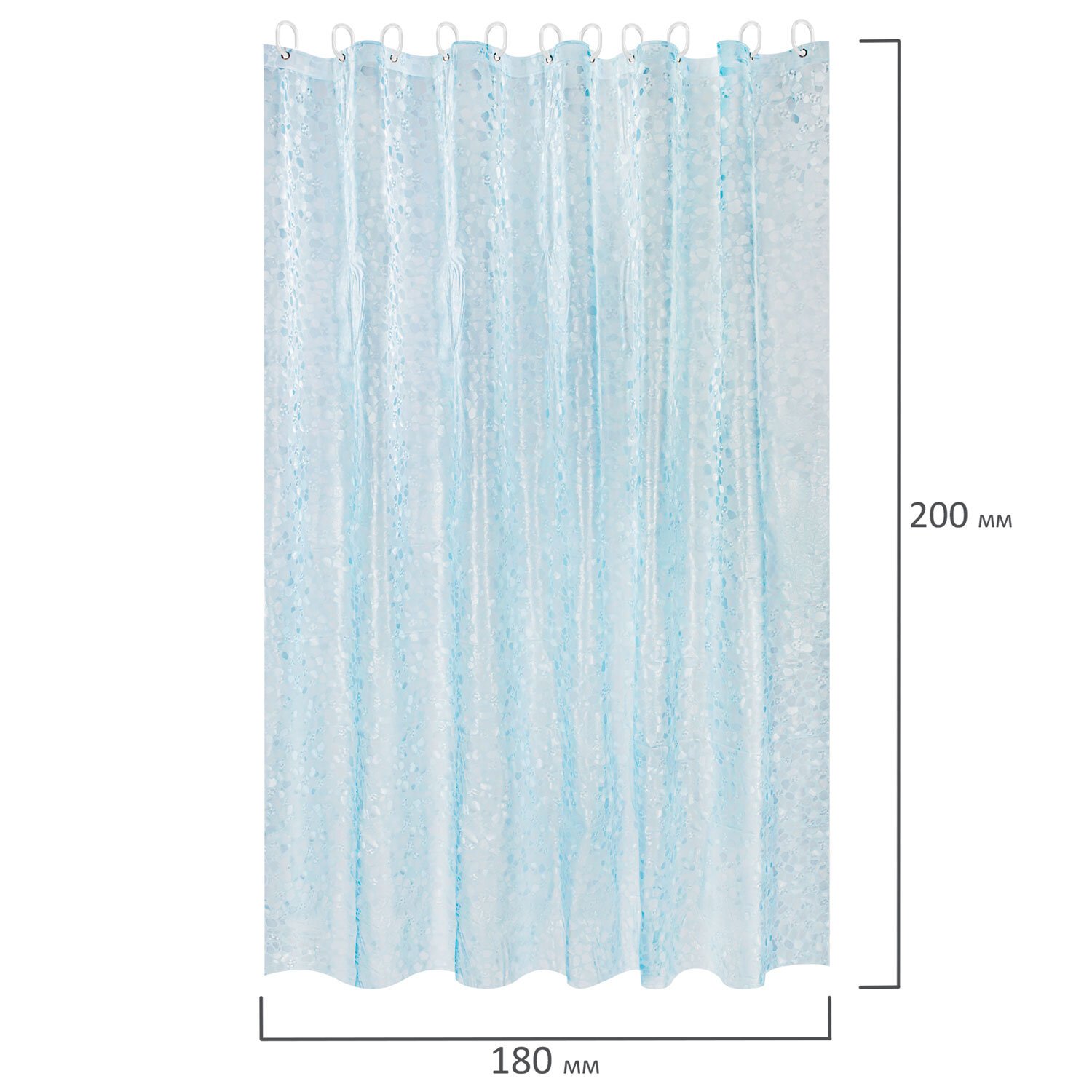 Шторка для ванной ПОЛИЭСТЕР, 180х200см, кольца в комплекте, ГОЛУБОЙ БРИЛЛИАНТ, PRIMILA, 700096