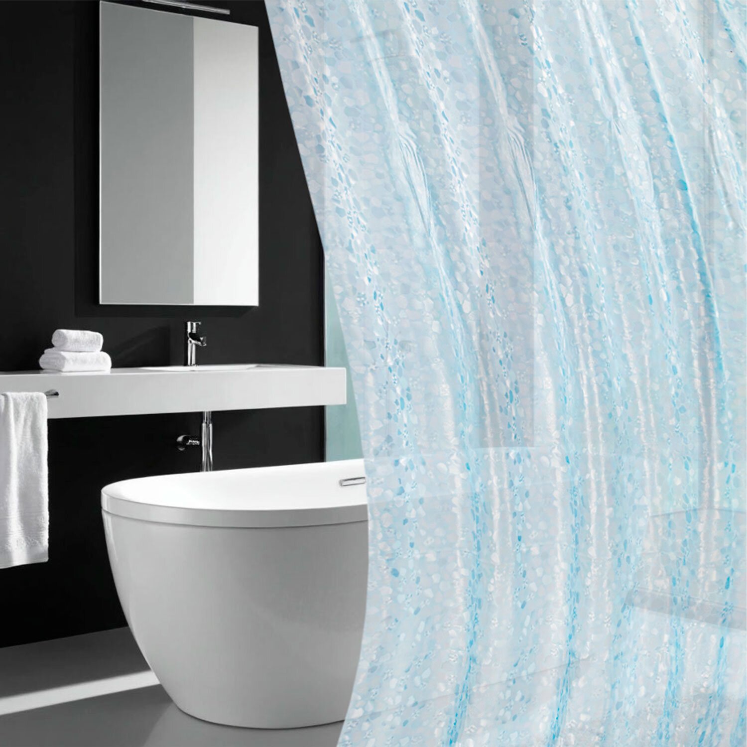 Шторка для ванной EVA, 180х200см, кольца в комплекте, СИНЯЯ ЛЕДЯНАЯ СВЕЖЕСТЬ, PRIMILA, 700100