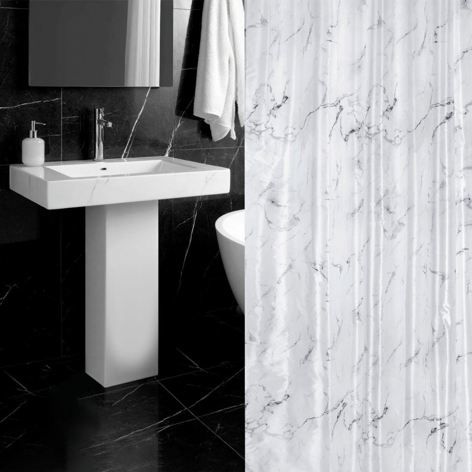 Шторка для ванной ПОЛИЭСТЕР, 180х180см, кольца в комплекте, БЕЛЫЙ МРАМОР, PRIMILA, 700079