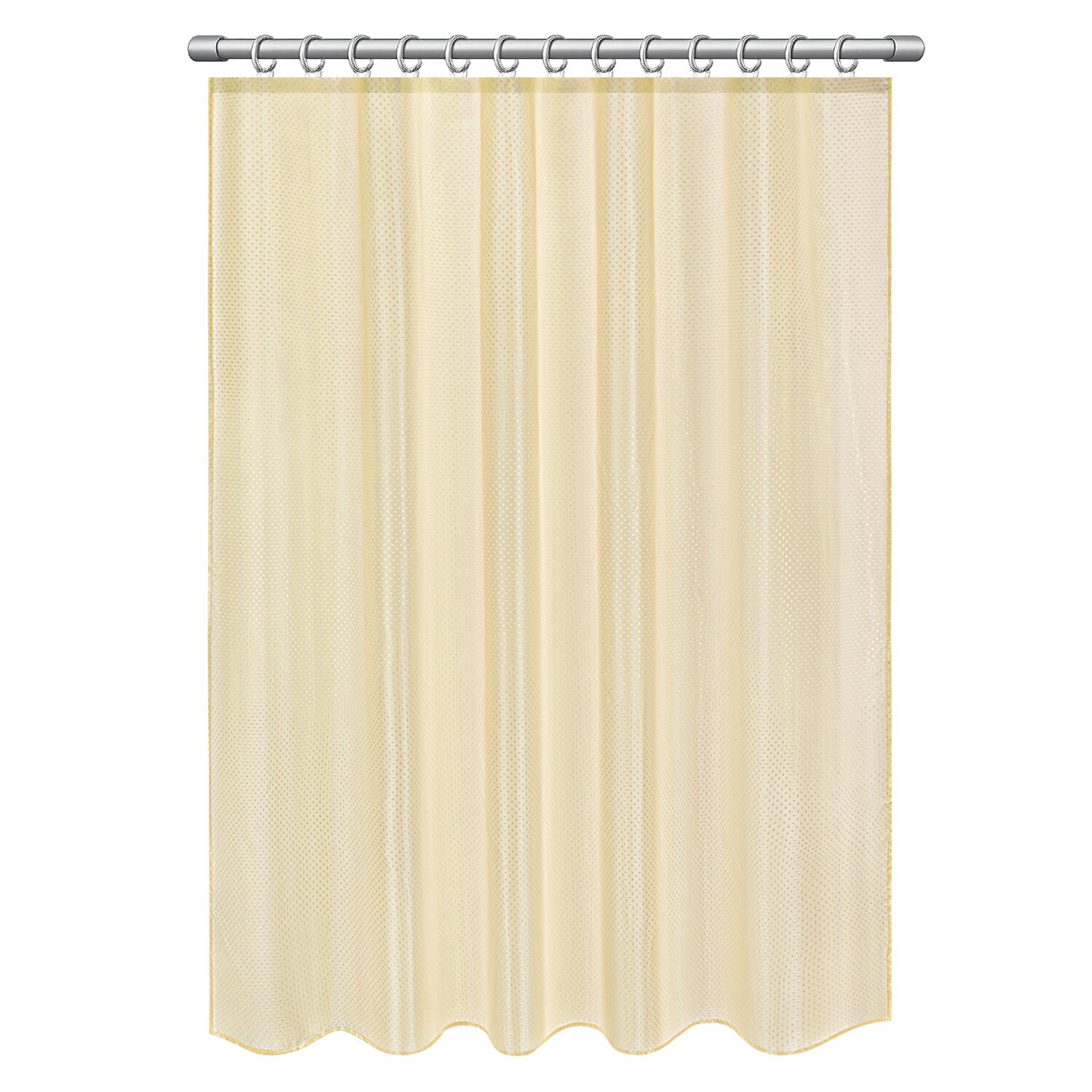 Шторка для ванной PRIMILA изготовлена из качественного, практичного, износостойкого полиэстера, что гарантирует отсутствие заломов и водонепроницаемость. Быстро сохнет, не шуршит, без запаха и приятная на ощупь. Шторку можно стирать, но не рекомендуется гладить. В комплекте с шторкой идут 12 прочных полипропиленовых колец, которые подойдут под любой тип карниза.