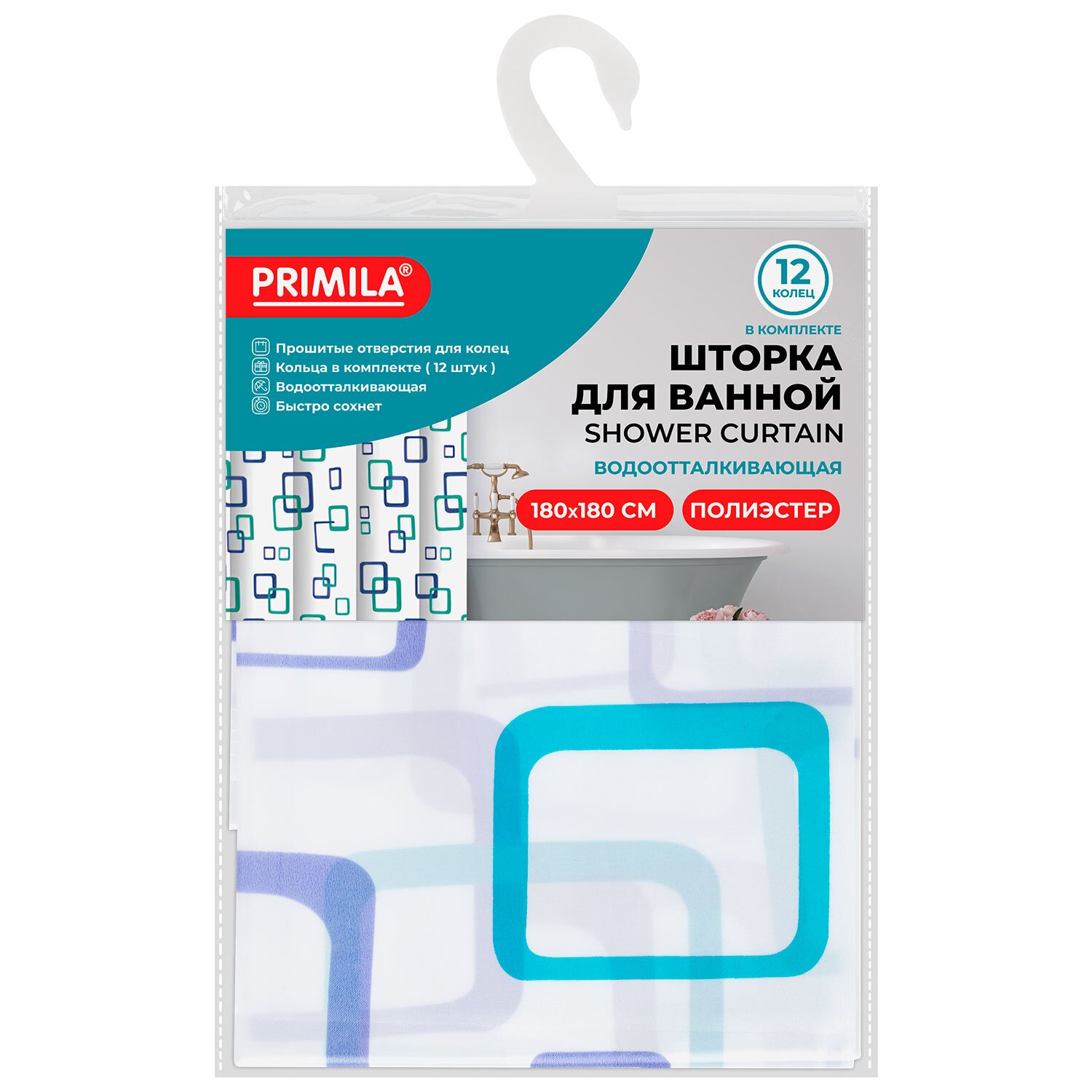 Шторка для ванной ПОЛИЭСТЕР, 180х180см, кольца в комплекте, ФИГУРЫ, PRIMILA, 700081