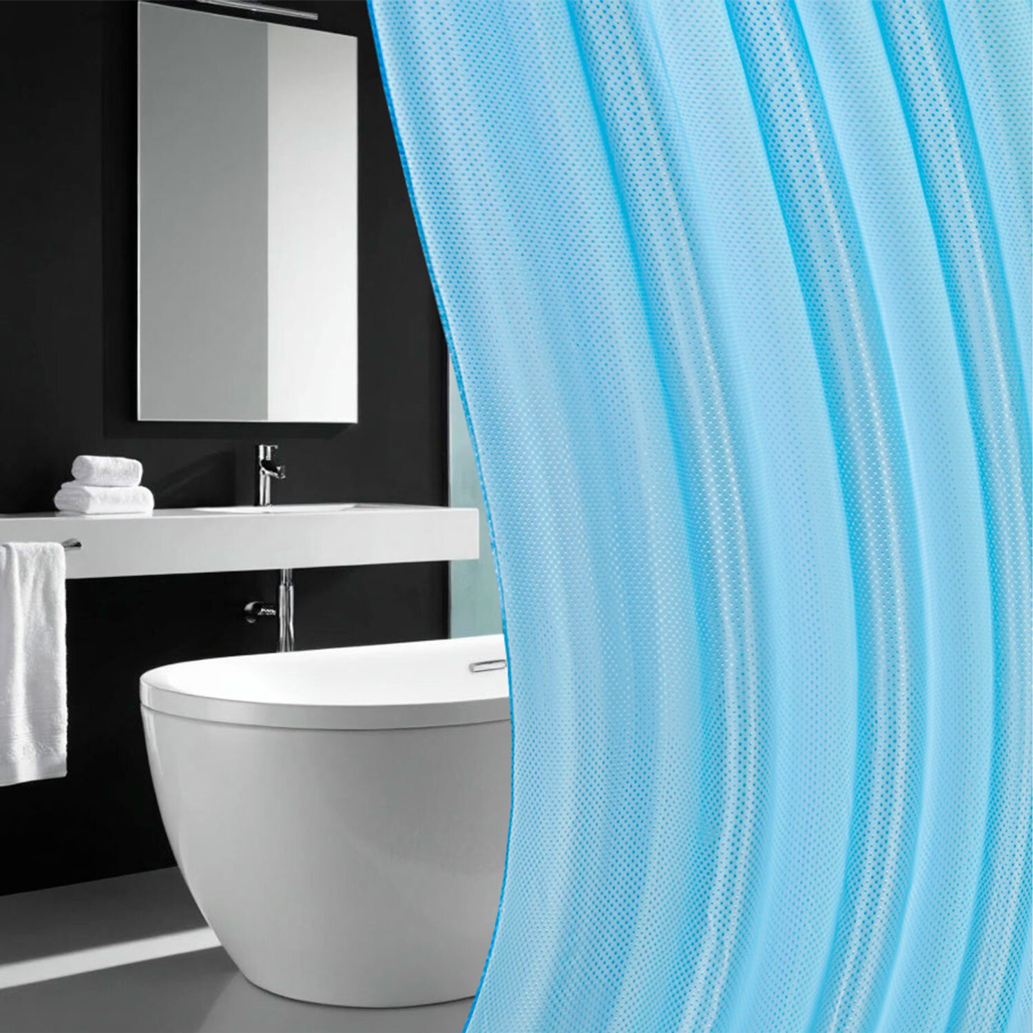 Шторка для ванной ПОЛИЭСТЕР, 180х180см, кольца в комплекте, ГОЛУБОЙ БРИЛЛИАНТ, PRIMILA, 700090