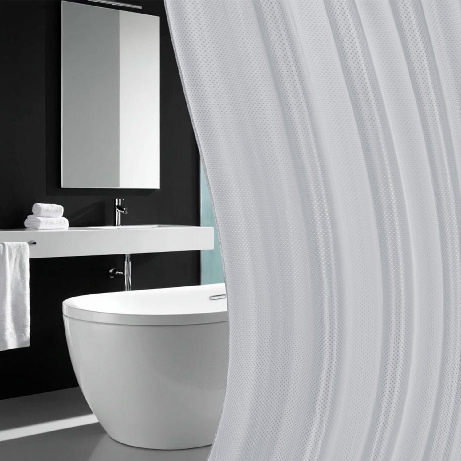 Шторка для ванной PRIMILA изготовлена из качественного, практичного, износостойкого полиэстера, что гарантирует отсутствие заломов и водонепроницаемость. Быстро сохнет, не шуршит, без запаха и приятная на ощупь. Шторку можно стирать, но не рекомендуется гладить. В комплекте с шторкой идут 12 прочных полипропиленовых колец, которые подойдут под любой тип карниза.