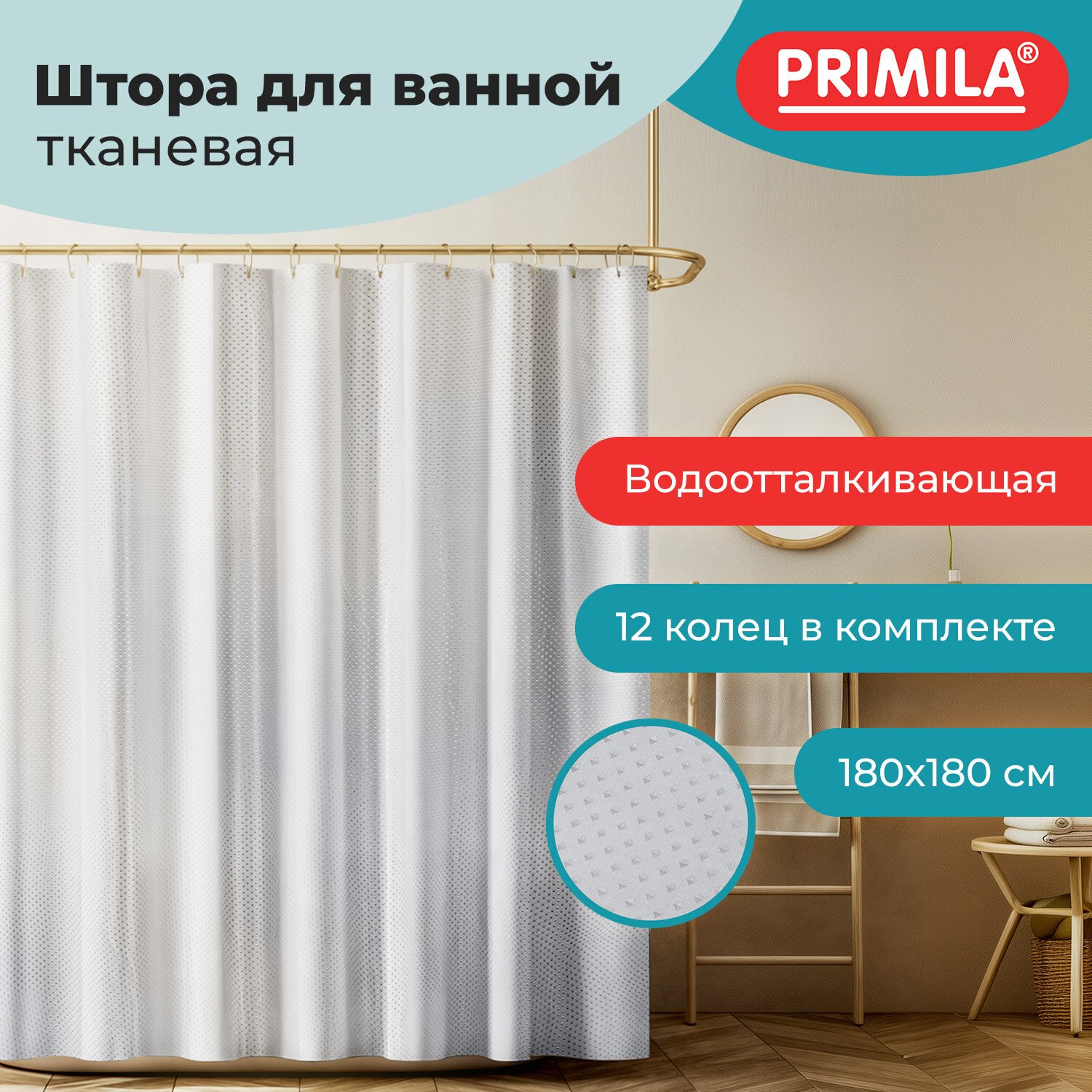Создайте уютную и безопасную атмосферу в вашей ванной комнате с помощью шторки для ванной PRIMILA! Сделайте шаг к комфорту и практичности уже сегодня.