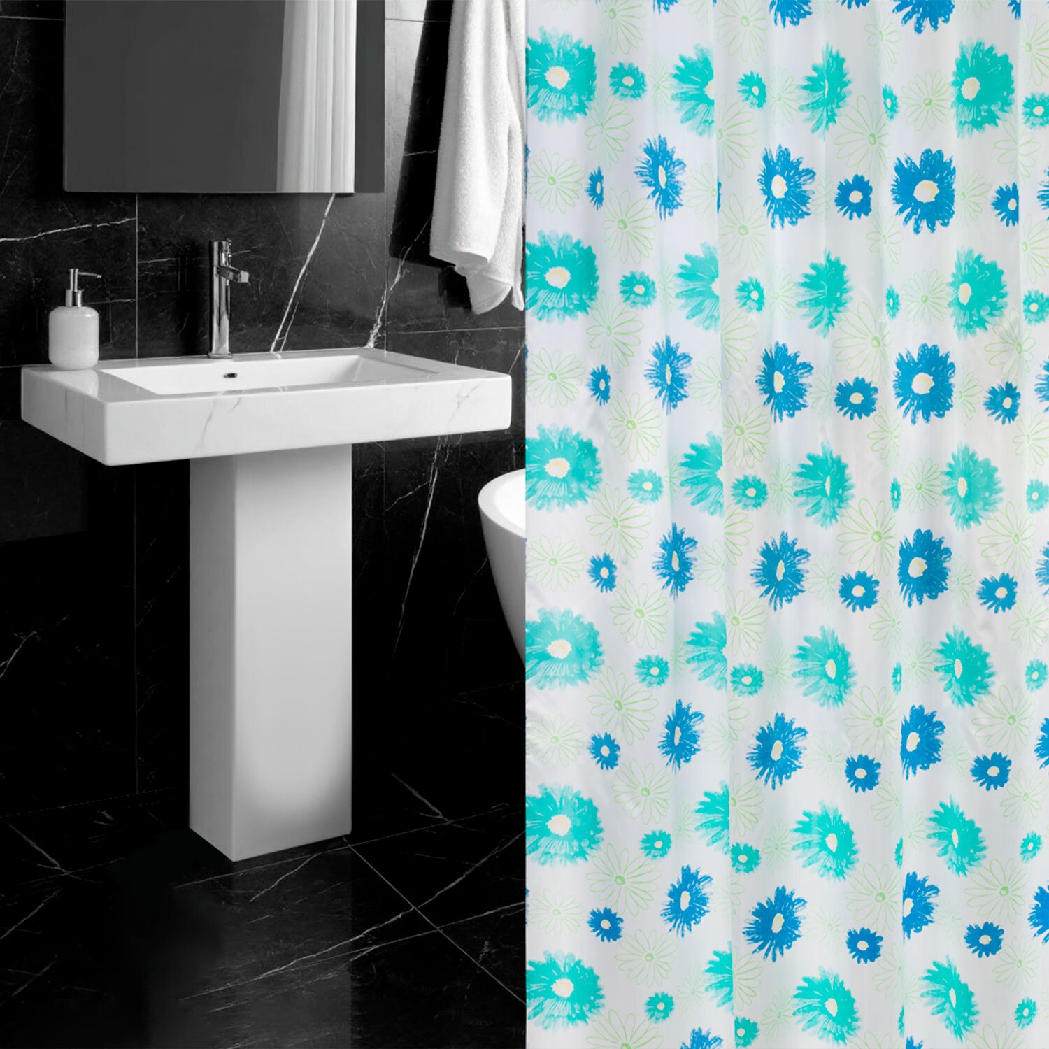 Шторка для ванной ПОЛИЭСТЕР, 180х200см, кольца в комплекте, ГОЛУБОЙ БРИЛЛИАНТ, PRIMILA, 700096