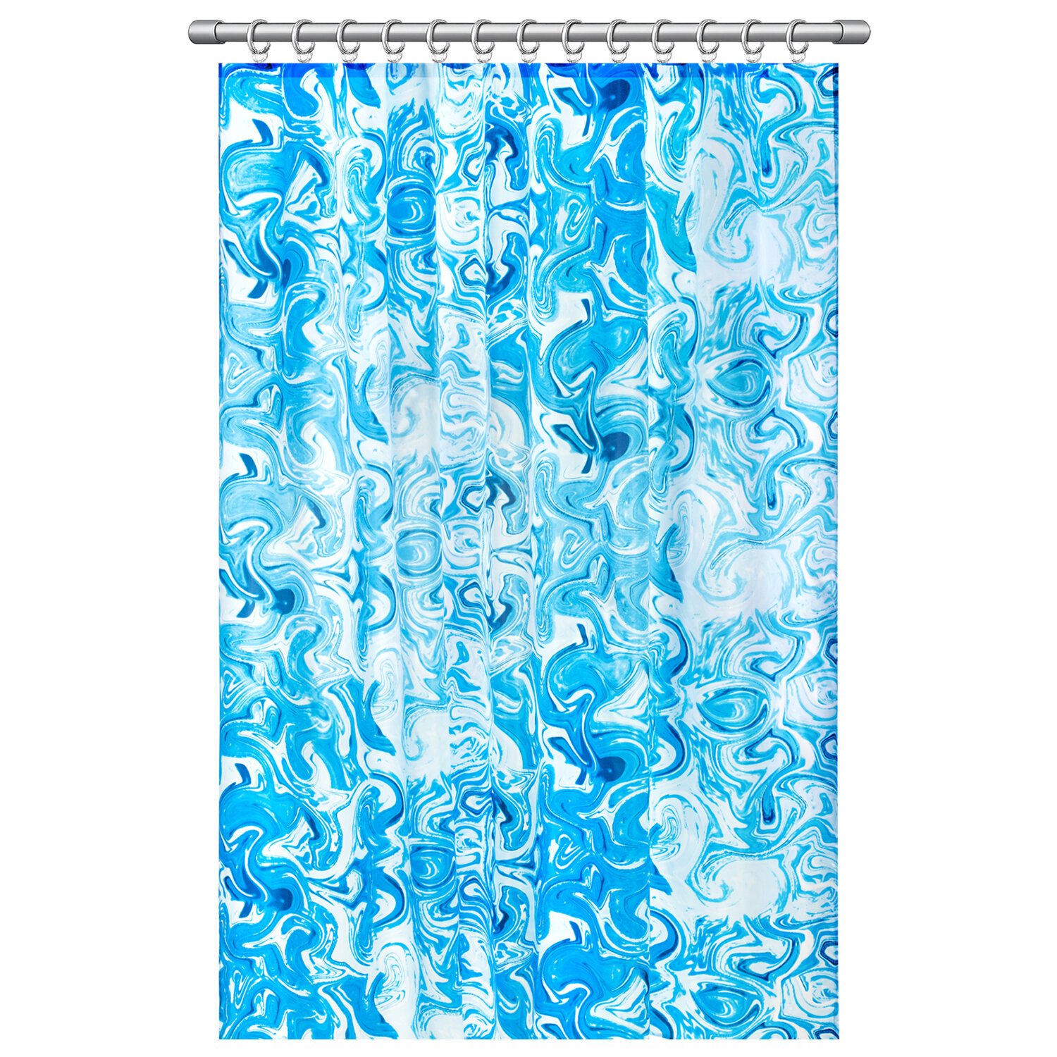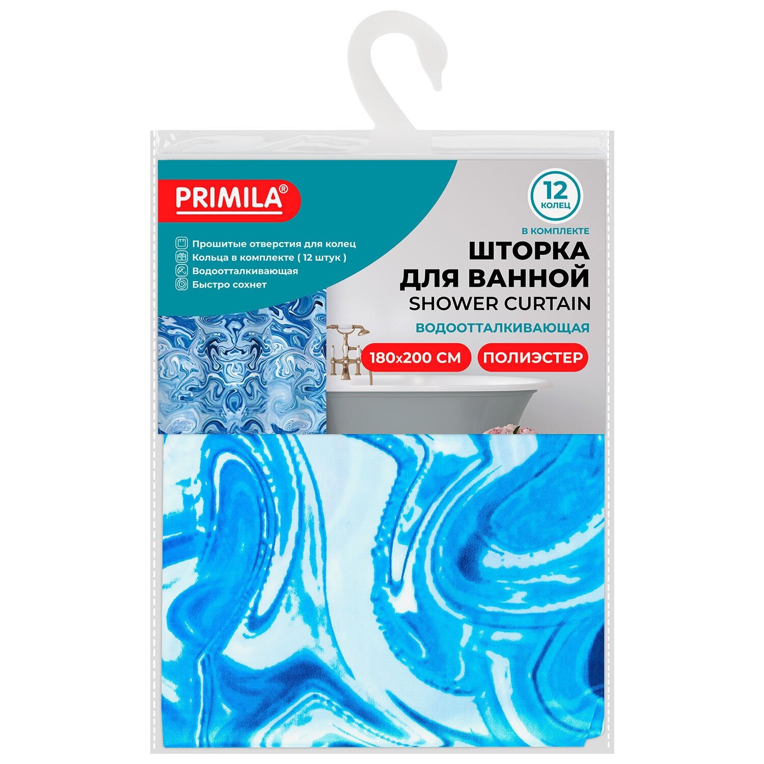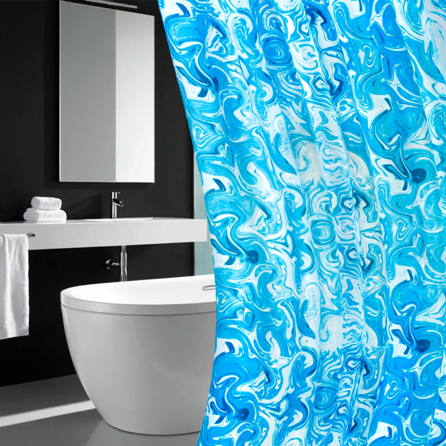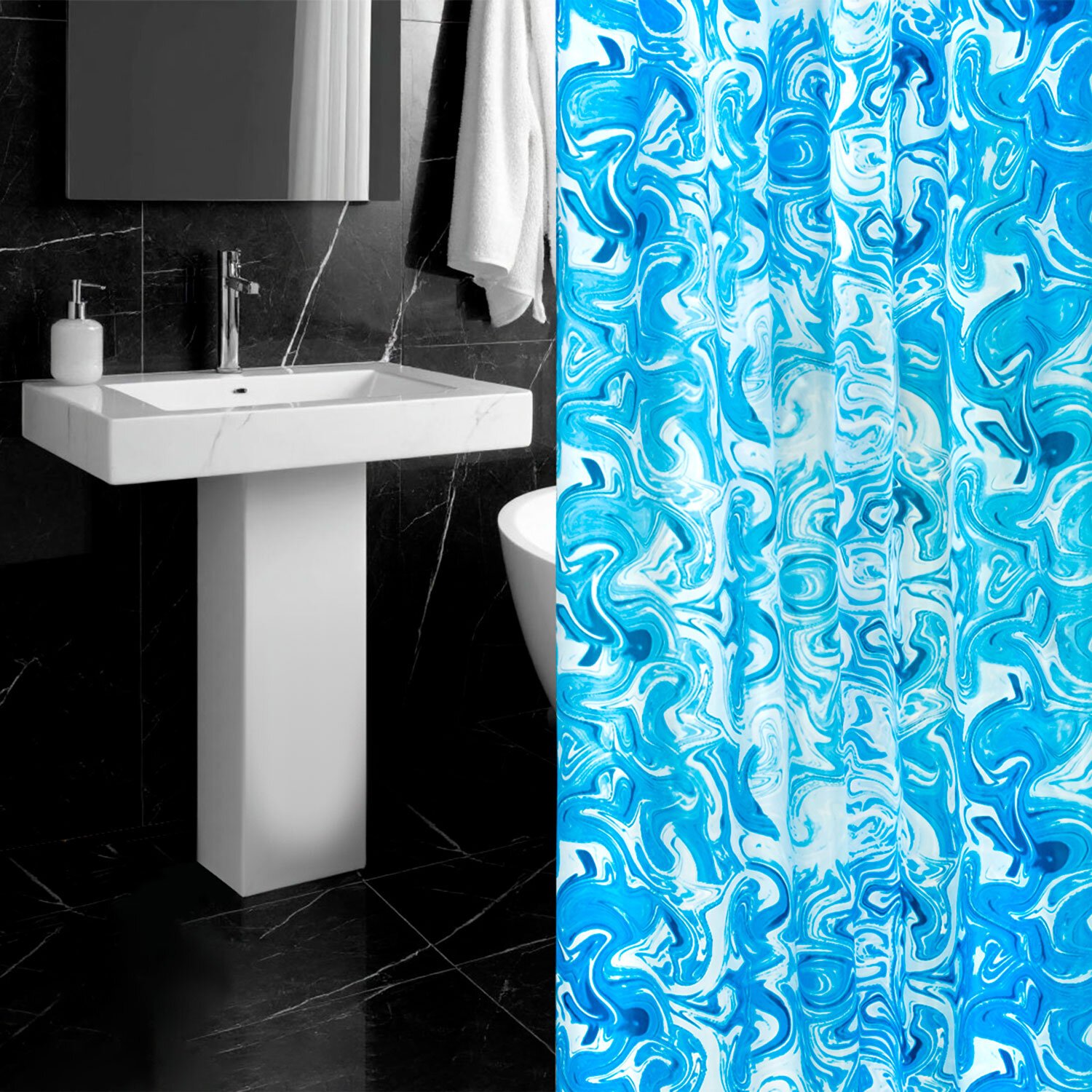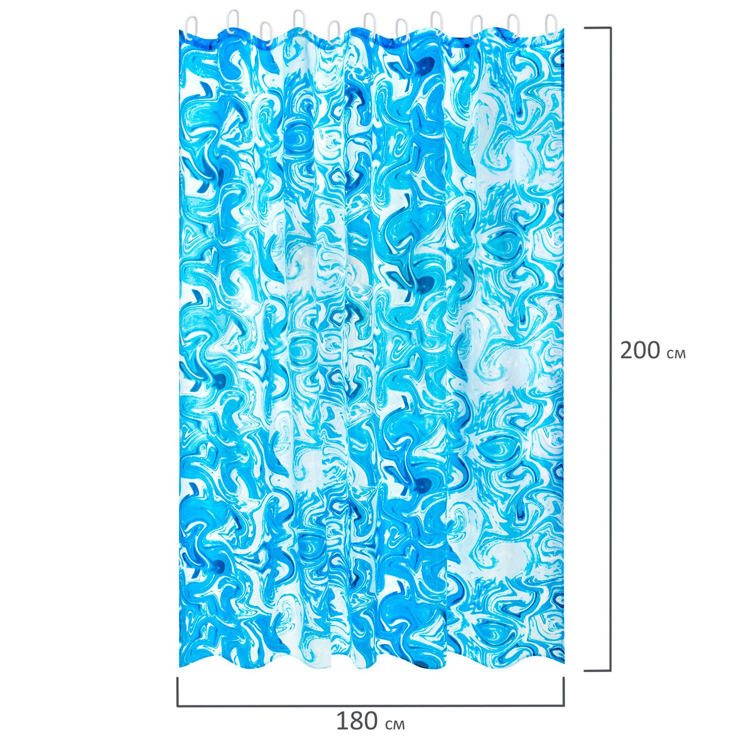 Шторка для ванной ПОЛИЭСТЕР, 180х200см, кольца в комплекте, ГОЛУБОЙ МРАМОР, PRIMILA, 700083