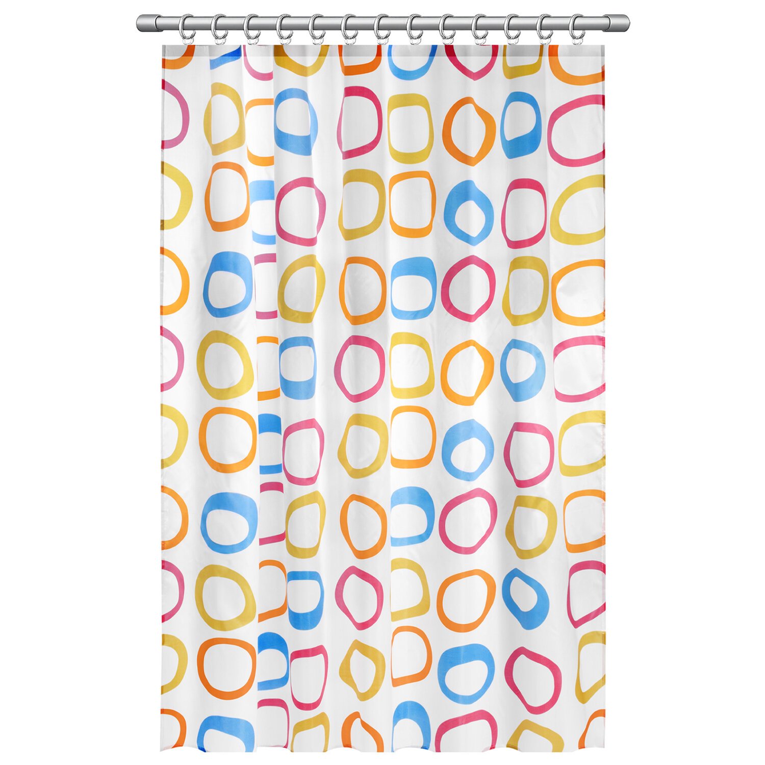 Шторка для ванной ПОЛИЭСТЕР, 180х200см, кольца в комплекте, КРУГИ, PRIMILA, 700086