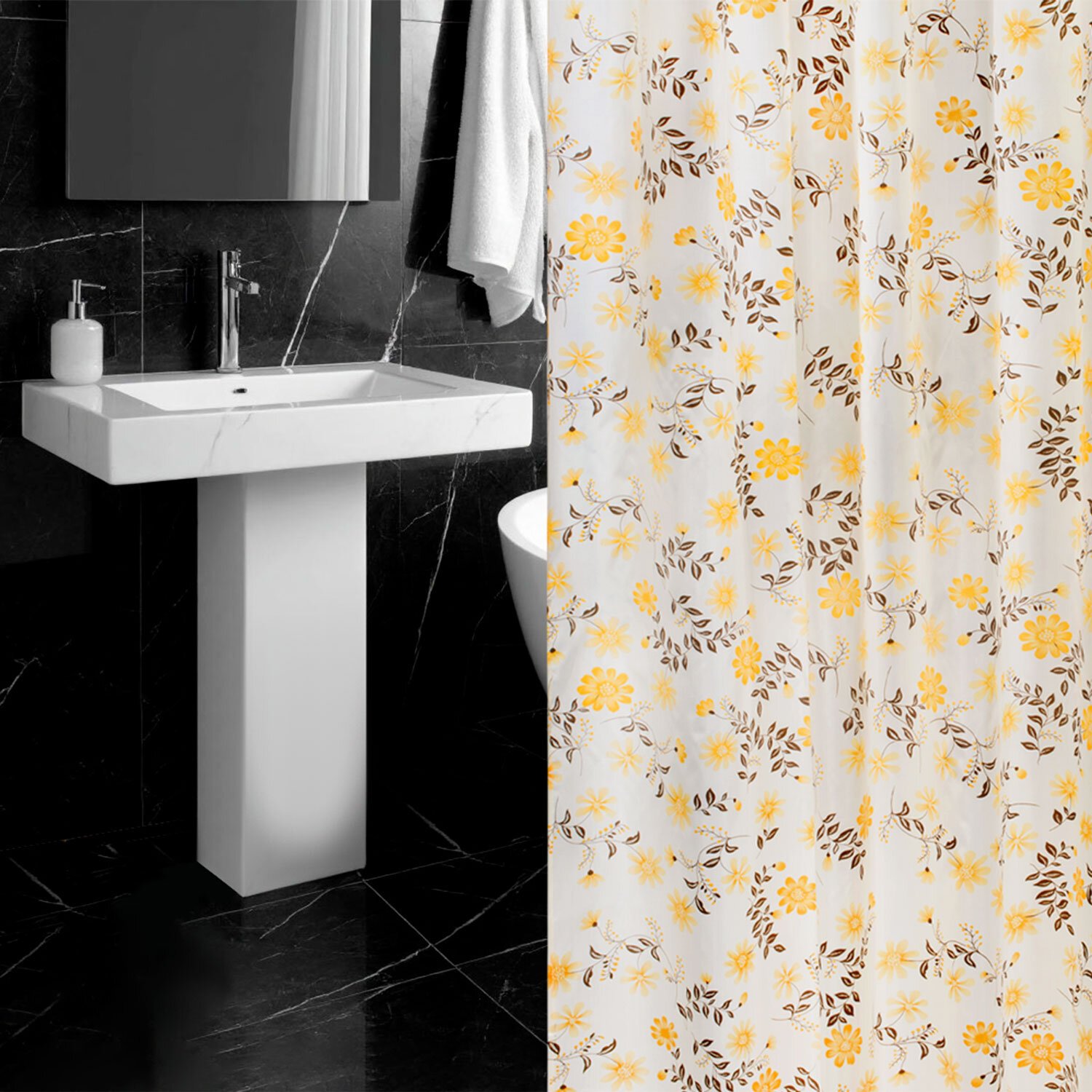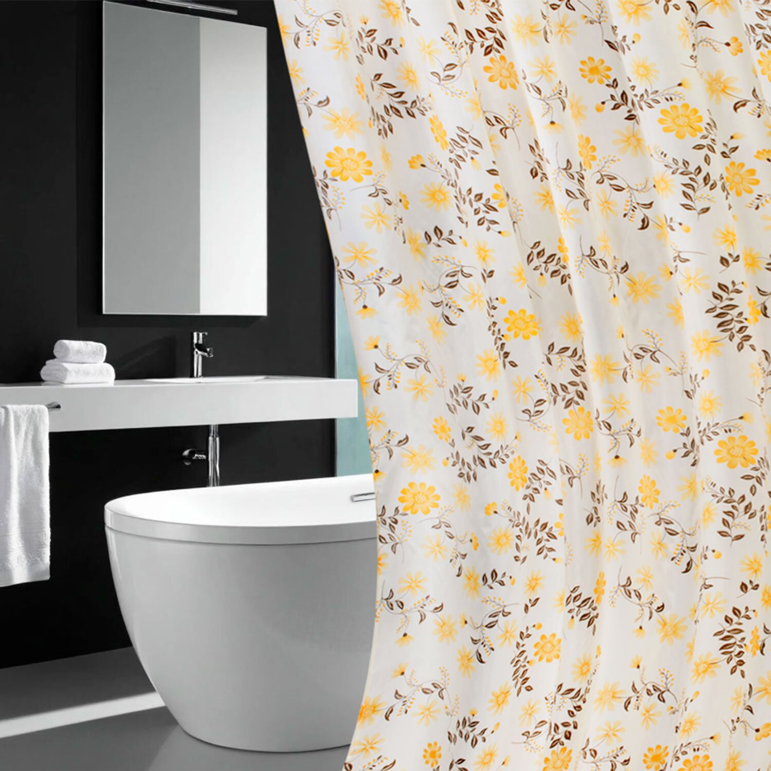 Шторка для ванной ПОЛИЭСТЕР, 180х200см, кольца в комплекте, ЦВЕТЫ, PRIMILA, 700082
