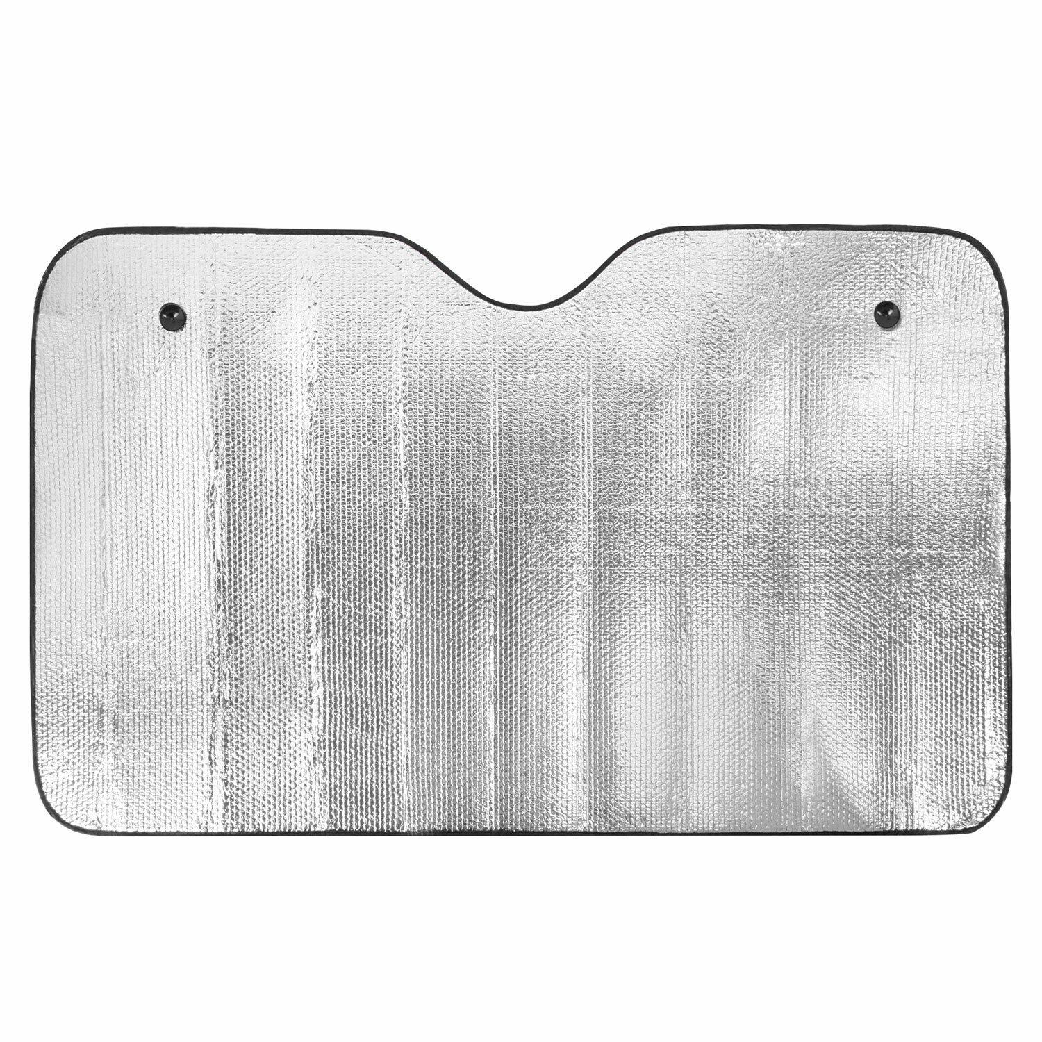 Серебристая поверхность шторки отражает солнечные лучи, препятствует нагреванию салона, защищает салон и торпеду от выгорания. Крепится на лобовое стекло автомобиля с помощью двух присосок. Размеры: ширина – 130 см, высота – 60 см.