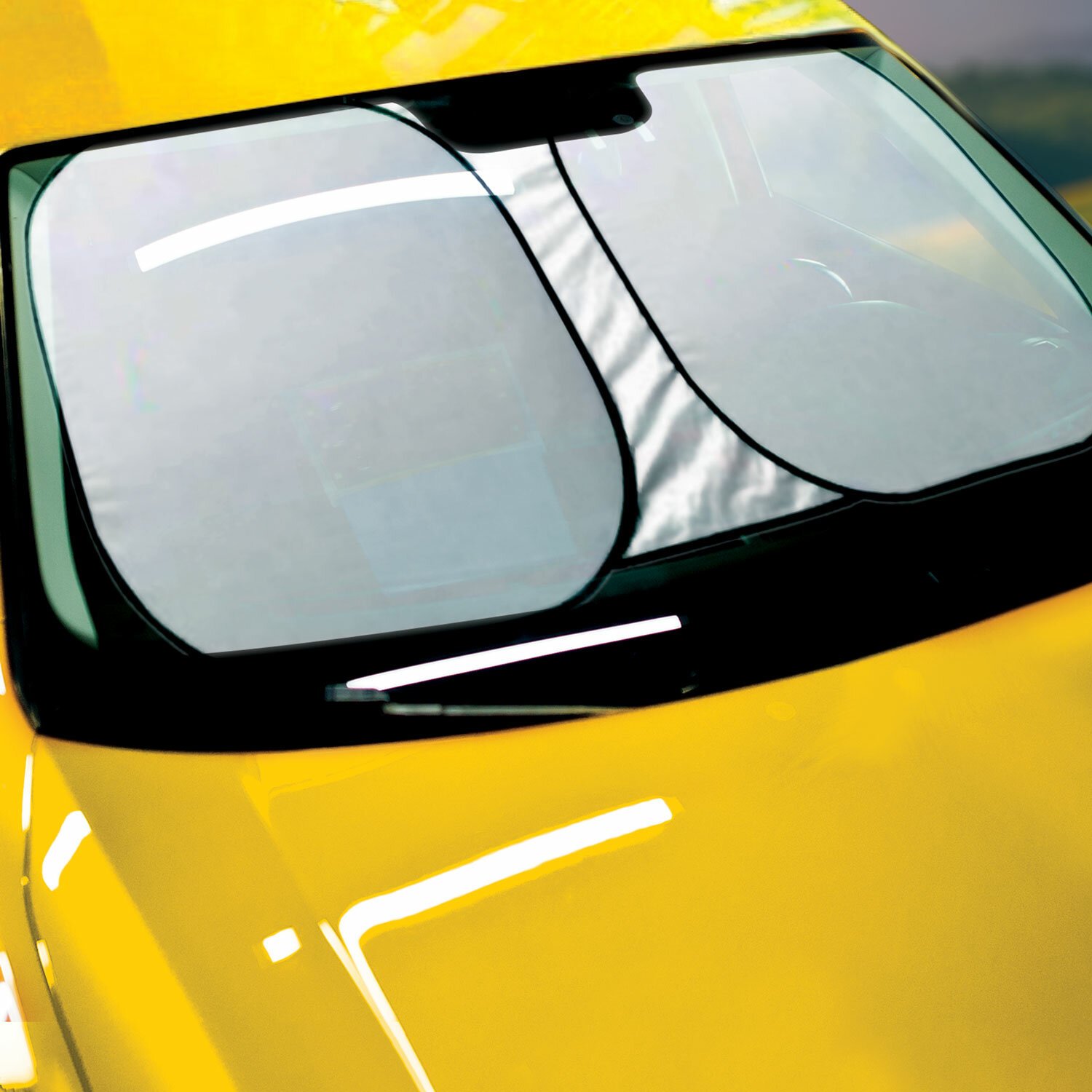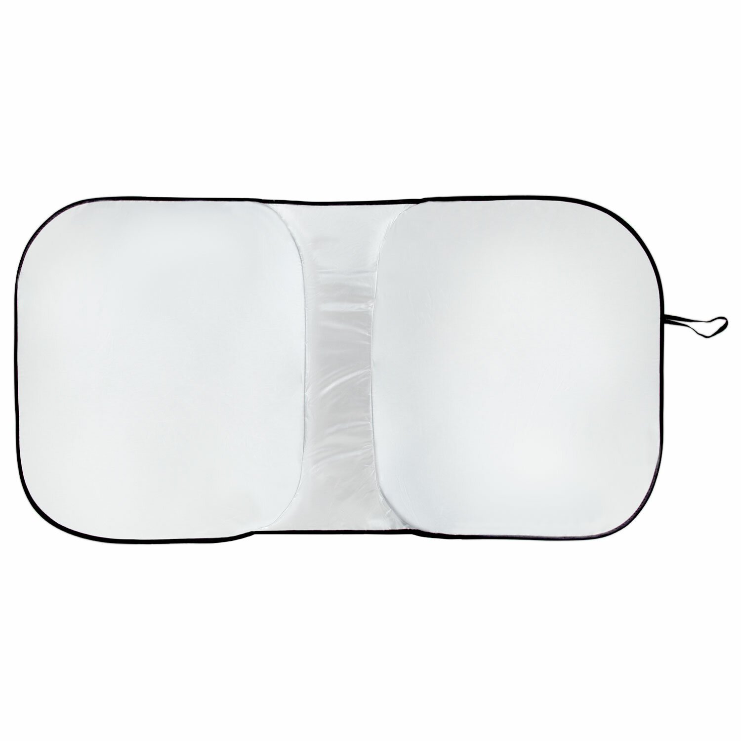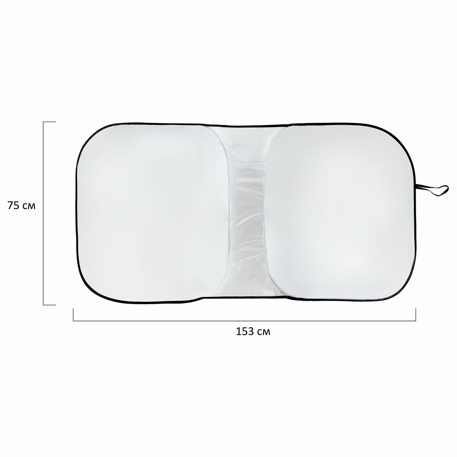 Серебристая поверхность шторки отражает солнечные лучи, препятствует нагреванию салона, защищает салон и торпеду от выгорания. Чтобы установить солнцезащитную шторку, необходимо ее полностью развернуть, нижнюю часть закрепить на панели, а верхнюю часть прижать козырьками. Благодаря упругому каркасу по периметру шторка надежно фиксируется на лобовом стекле автомобиля и не сползает. Размеры: ширина – 153 см, высота – 75 см. Обладает дополнительной функцией уменьшения ширины на 10 см.