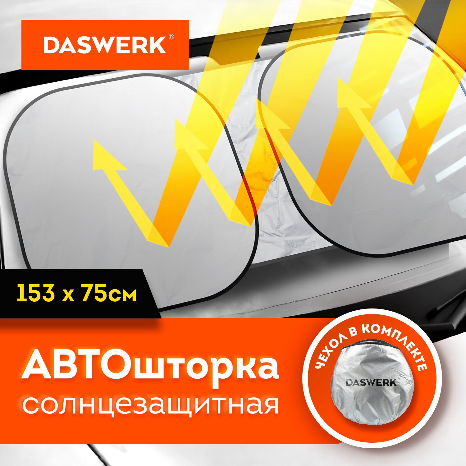 Шторка солнцезащитная 150х80 см для лобового стекла автомобиля, на присосках, DASWERK, 671253