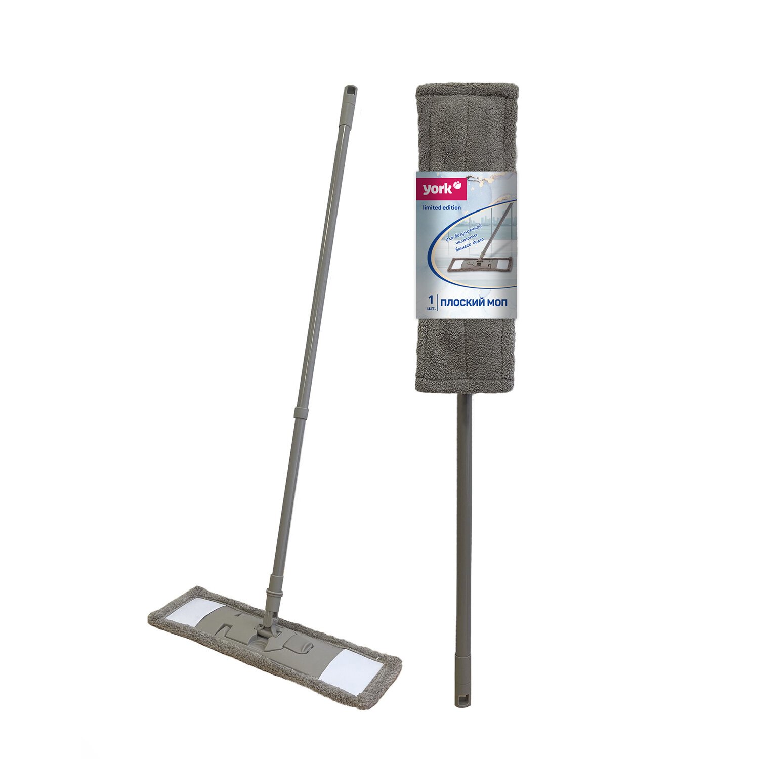 Швабра для мытья полов YORK с плоской платформой рукояткой телескоп 120 см. и насадкой из микрофибры Классик из коллекции Limited Edition подходит для быстрой ежедневной уборки. Имеет универсальный цвет и стандартную платформу.