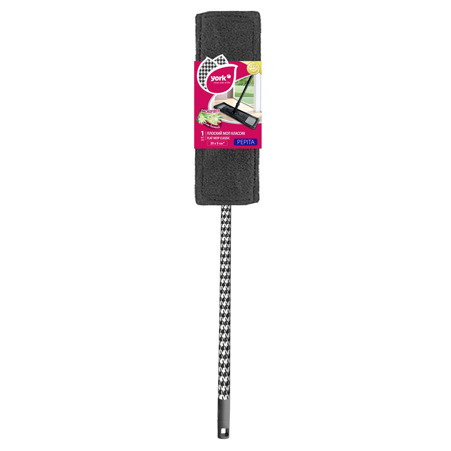 Стильная швабра ""Классик"" с плоским МОПом из коллекции ПЕПИТА. Очень маневренная, проходит в самые узкие места, благодаря чему незаменима при уборке полов под мебелью. Микроволокна удаляют сильные загрязнения без использования моющих средств. Не оставляет разводов. Подходит для всех видов полов. Насадка легко снимается и одевается. Возможна стирка в стиральной машине при температуре до 40 С.