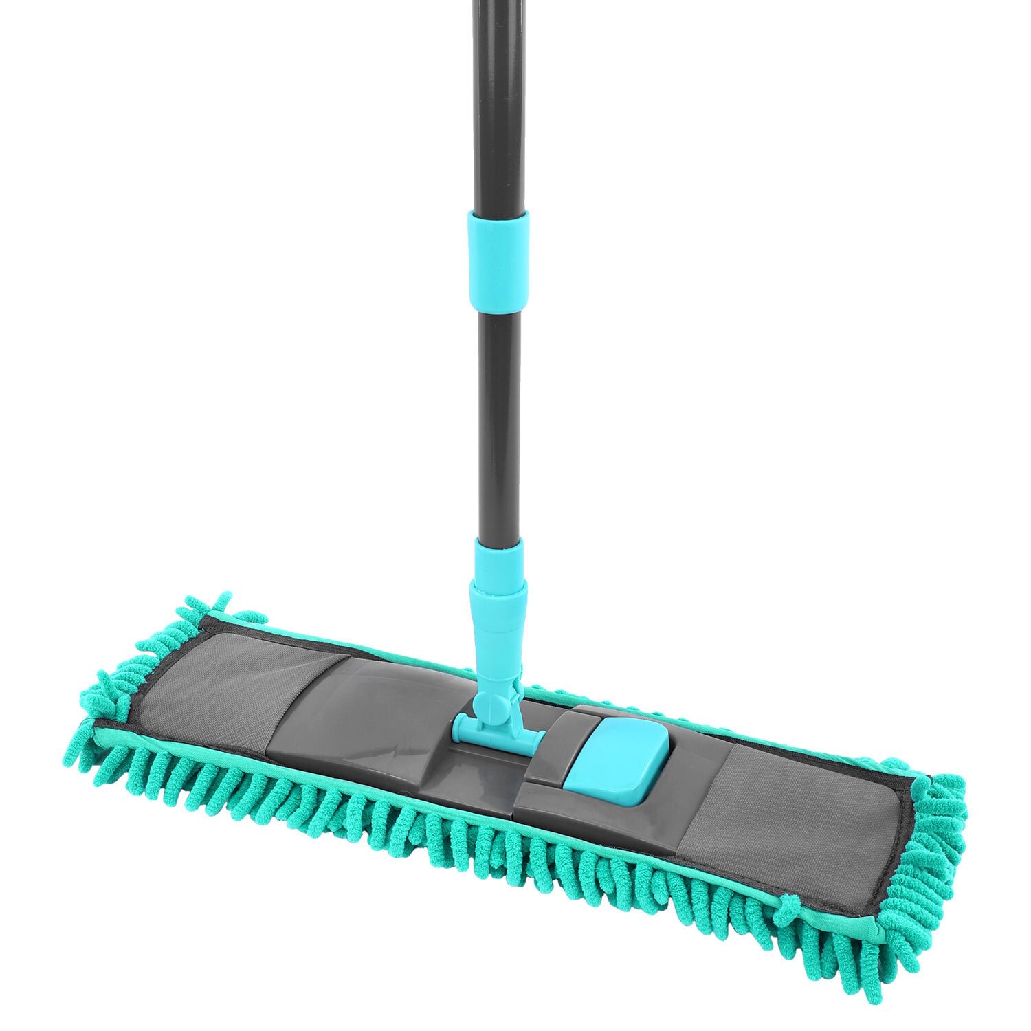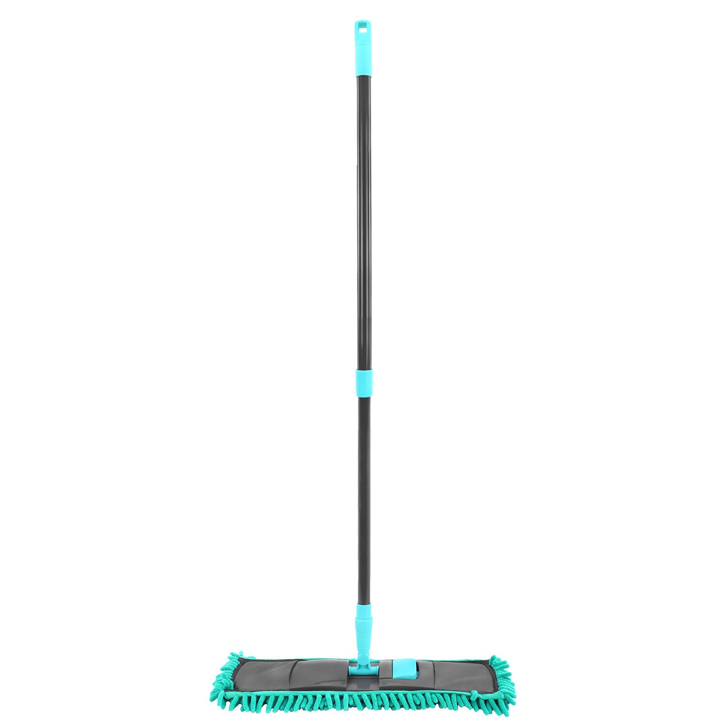 Швабра с флаундером 40 см, черенок 80-120 см, еврорезьба, насадка МОП микрофибра СИНЕЛЬ, индивидуальная упаковка пакет, LAIMA, 606314