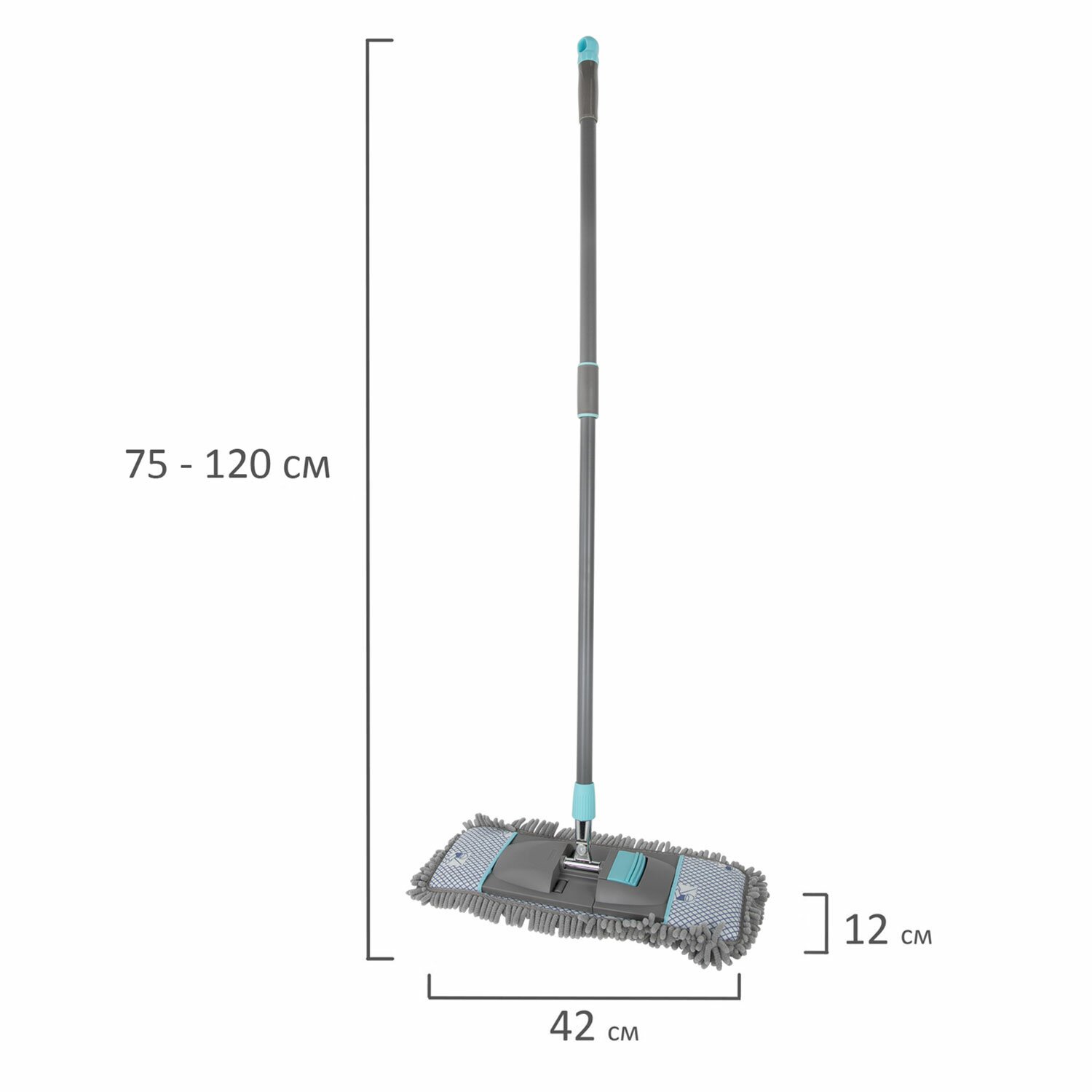 Швабра с насадкой 42 см, телескопический черенок 75-120 см, микрофибра, карманы, LAIMA HOME, 606798