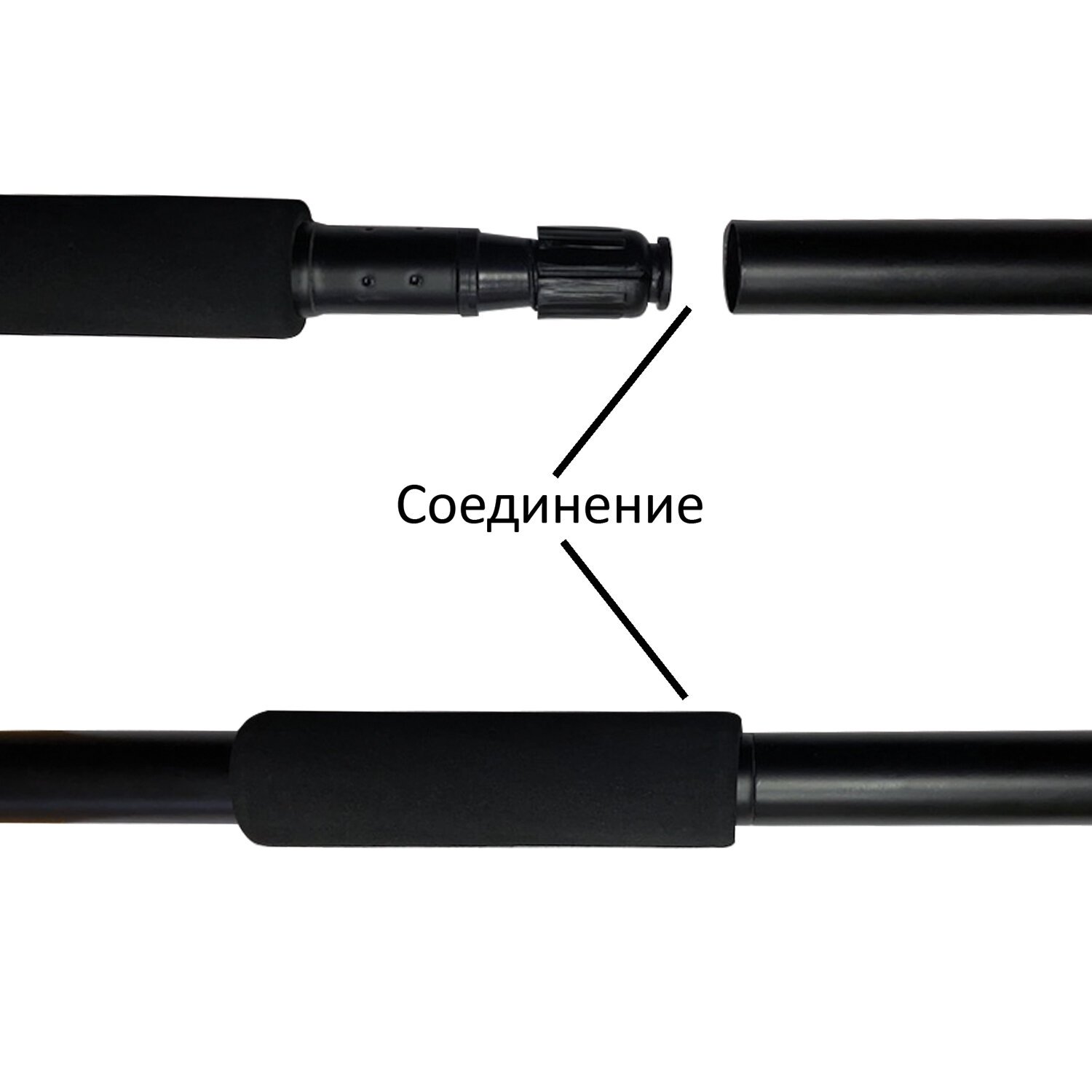 Черенок-рукоятка – составной, и состоит из двух частей (фиксация происходит с помощью внутренней распорки за счет кручения, по принципу фиксации длинны в телескопических черенках).