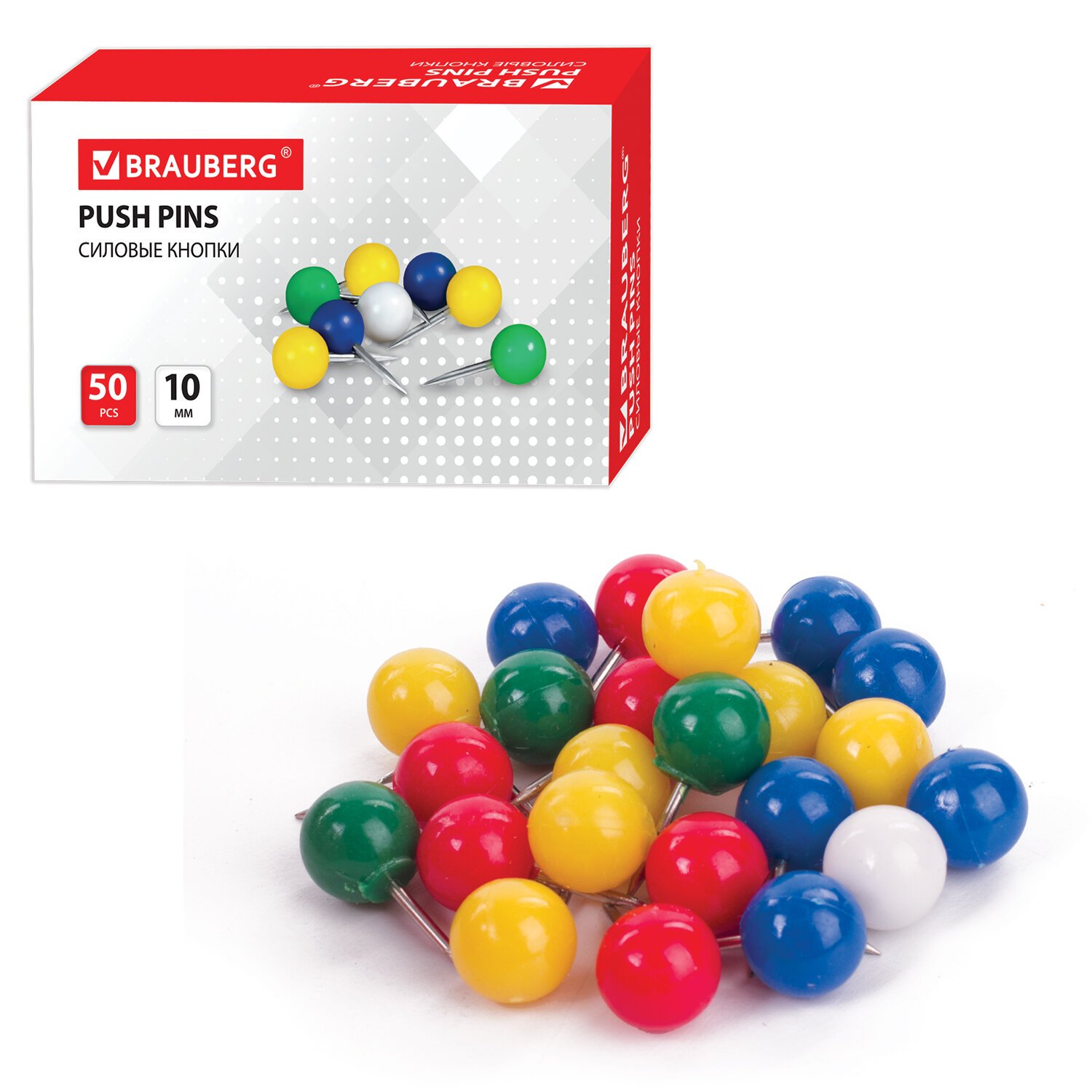 Силовые кнопки-гвоздики BRAUBERG, цветные (шарики), 50 шт., в картонной коробке, 221550