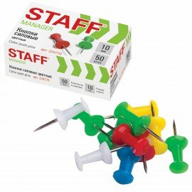 Силовые кнопки-гвоздики STAFF используются для крепления бумаги на пробковые и фетровые доски, а также на другие поверхности.