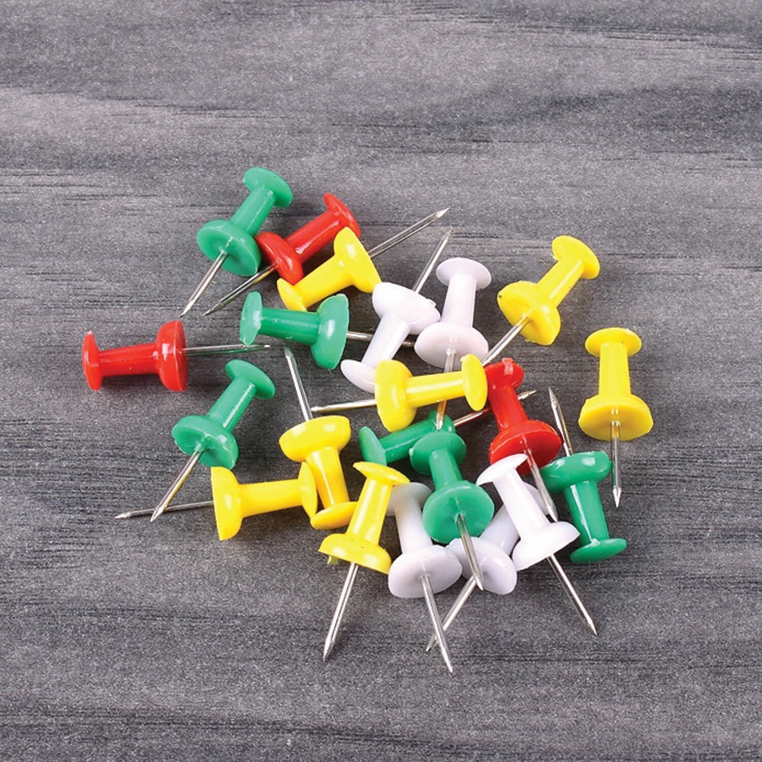Кнопки с цветной пластиковой шляпкой диаметром 8 мм и стальным острием длиной 10 мм. 50 штук в картонной коробке.