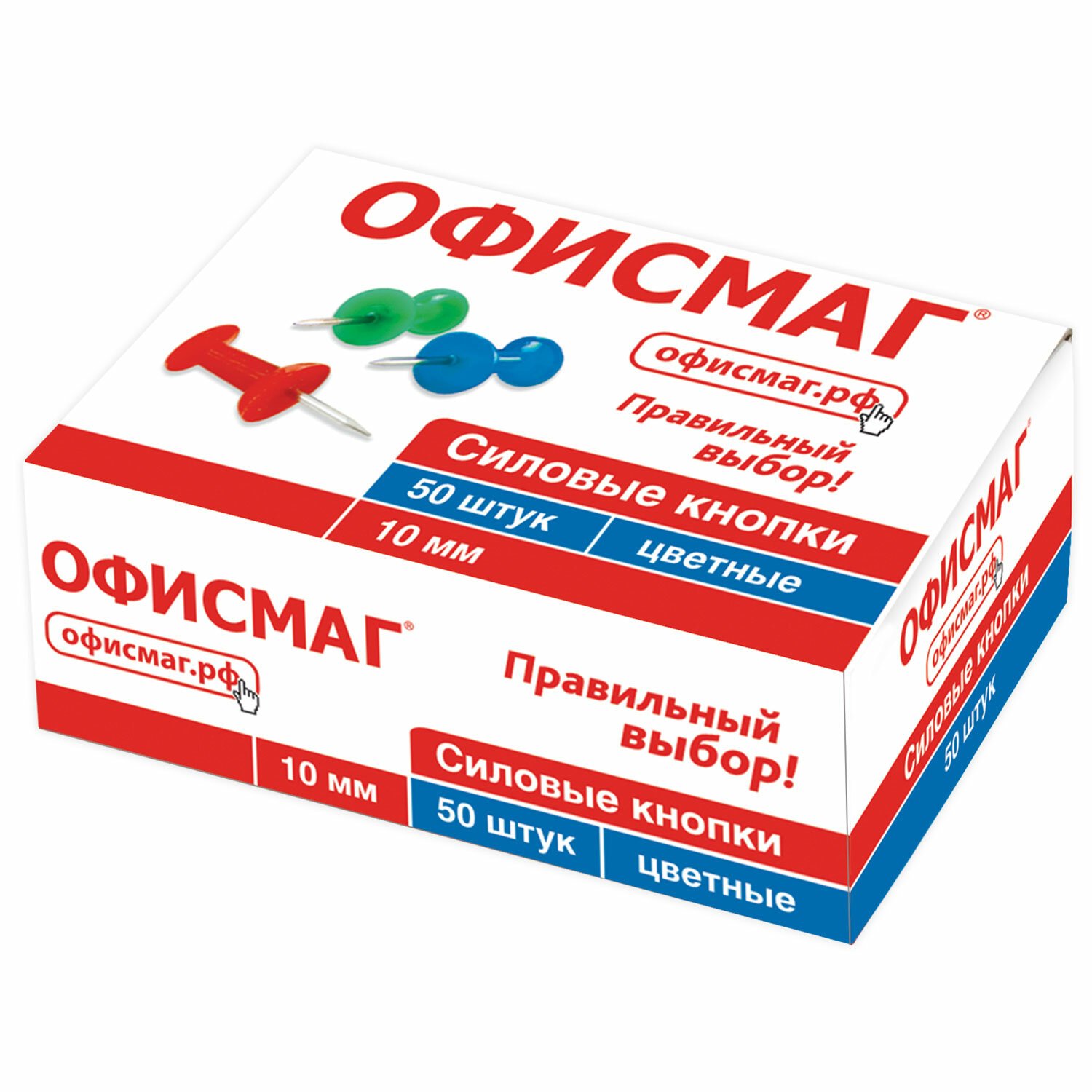 Силовые кнопки-гвоздики ОФИСМАГ, цветные, 50 шт., в картонной коробке., 222092