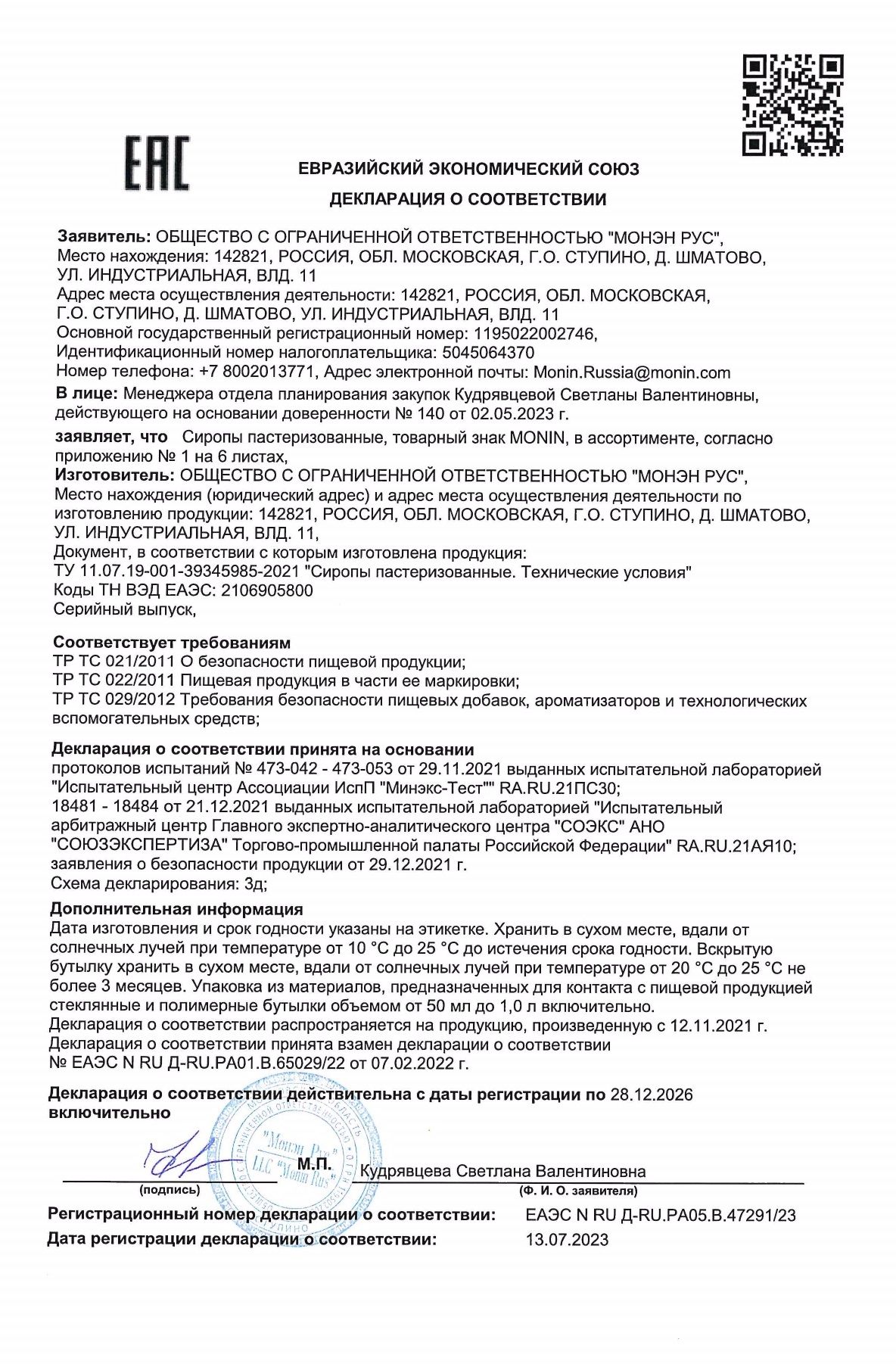 Независимо от того, используете ли вы MONIN для приготовления кофе, освежающего коктейля, вкусного мороженого или топпинга для выпечки, сироп всегда будет добавлять нежную нотку в каждый глоток напитка или кусочек кондитерского изделия.