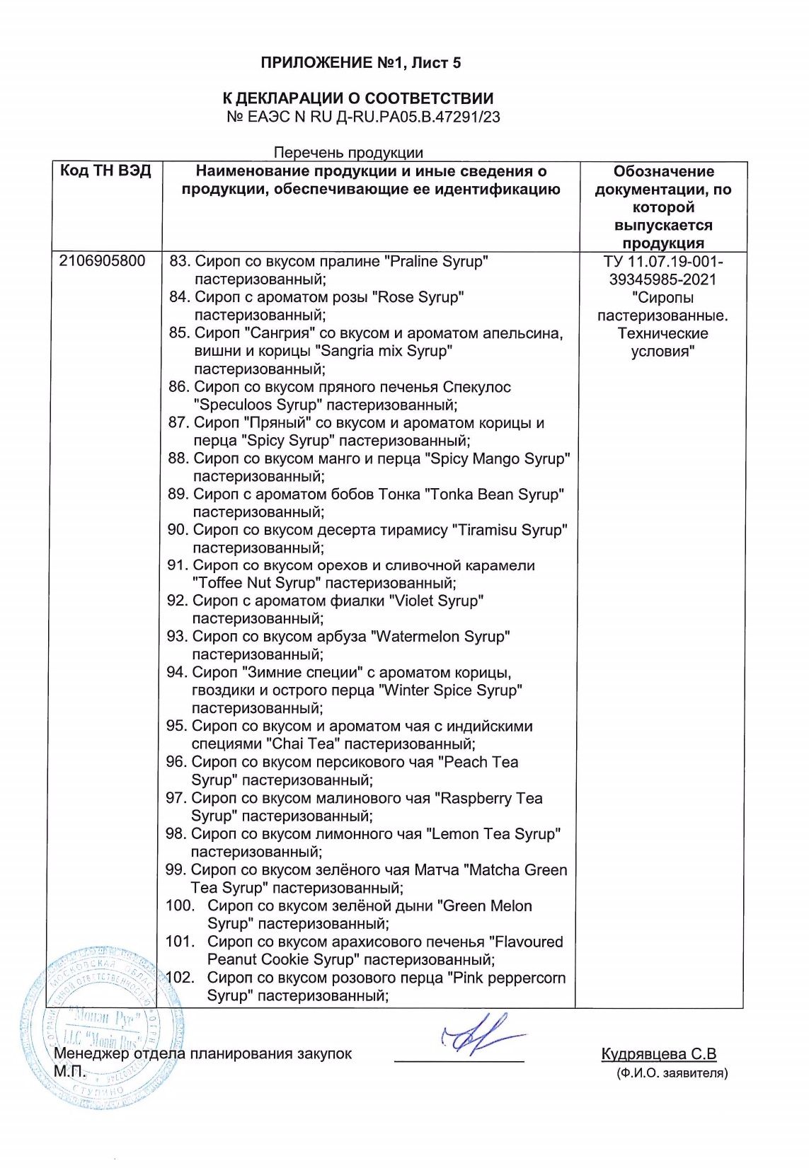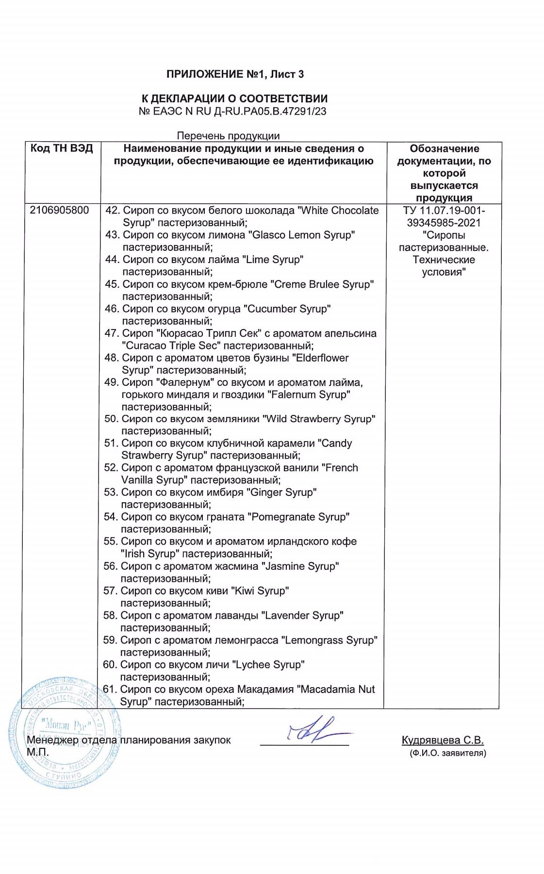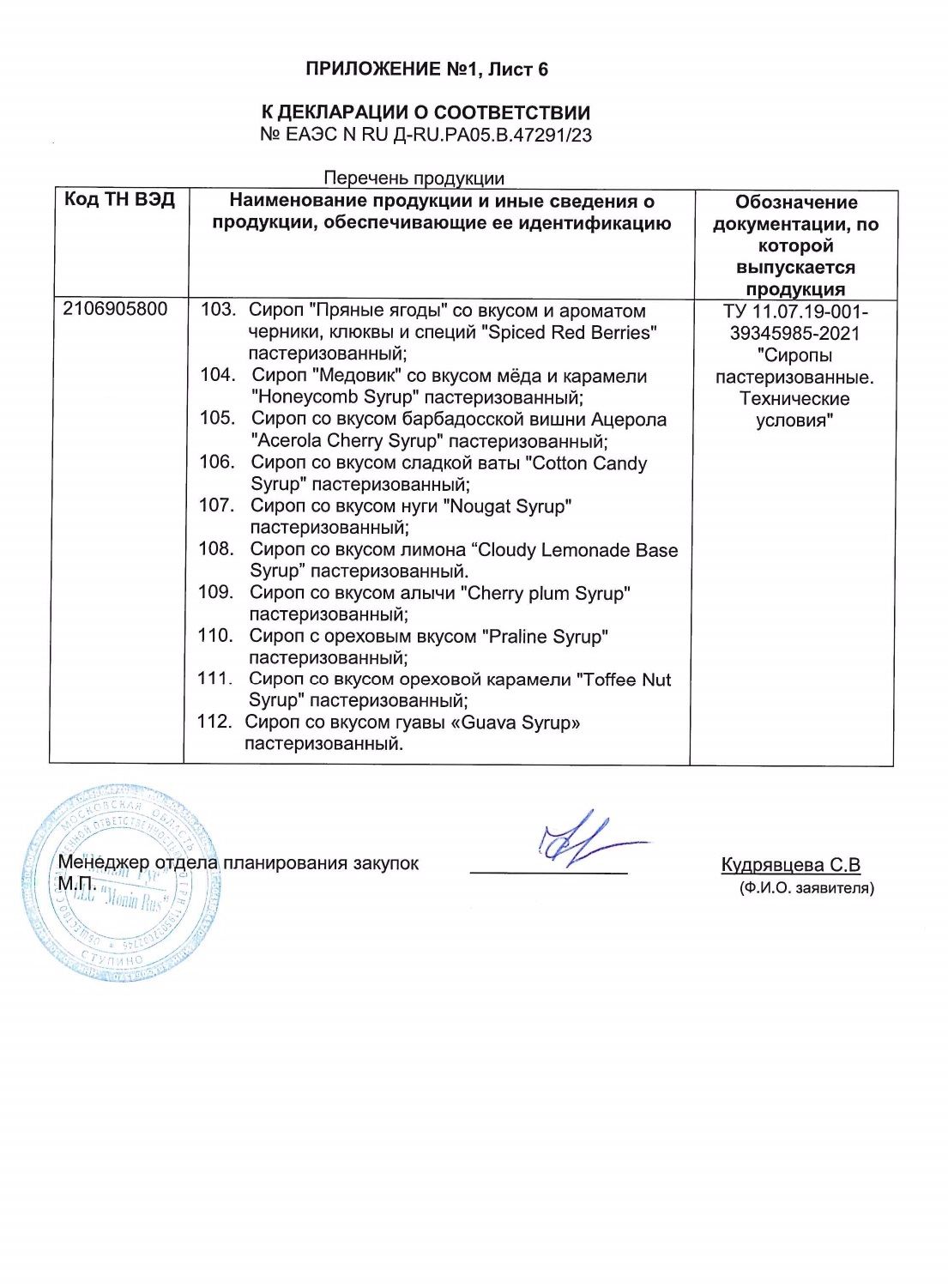 Рекомендация по использованию: сироп добавлять по вкусу в коктейли, мороженое и десерты, либо разбавлять водой в соотношении 1:8.