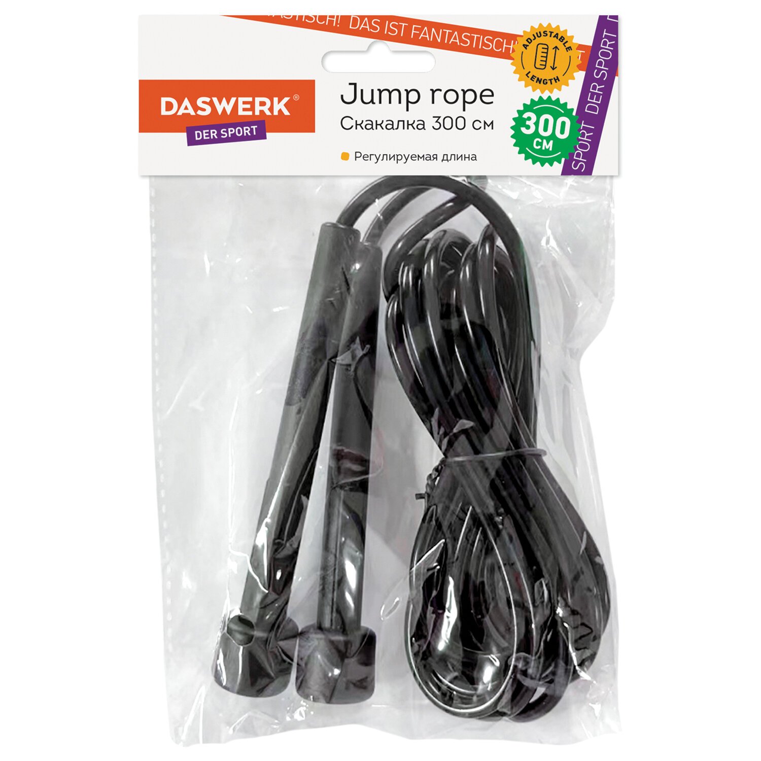 Скакалка спортивная 300 см, ПВХ, регулируемая длина, черная, DASWERK, 680027