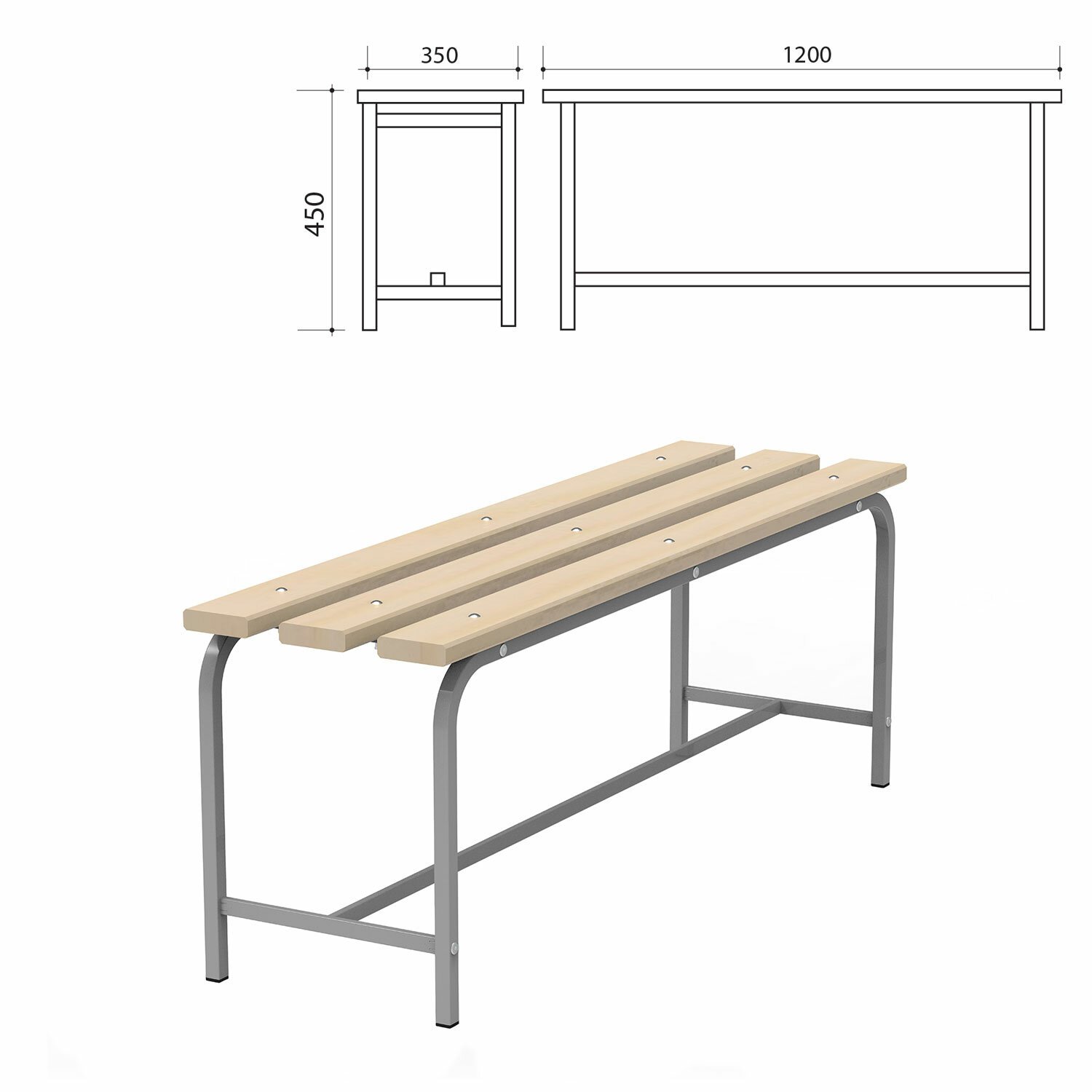 Скамья предназначена для эксплуатации в раздевалках спортивных учреждений, предприятий, офисов. Металлический каркас и доски из натуральной древесины обеспечивают надежность и долговечность эксплуатации. Простая сборка.
