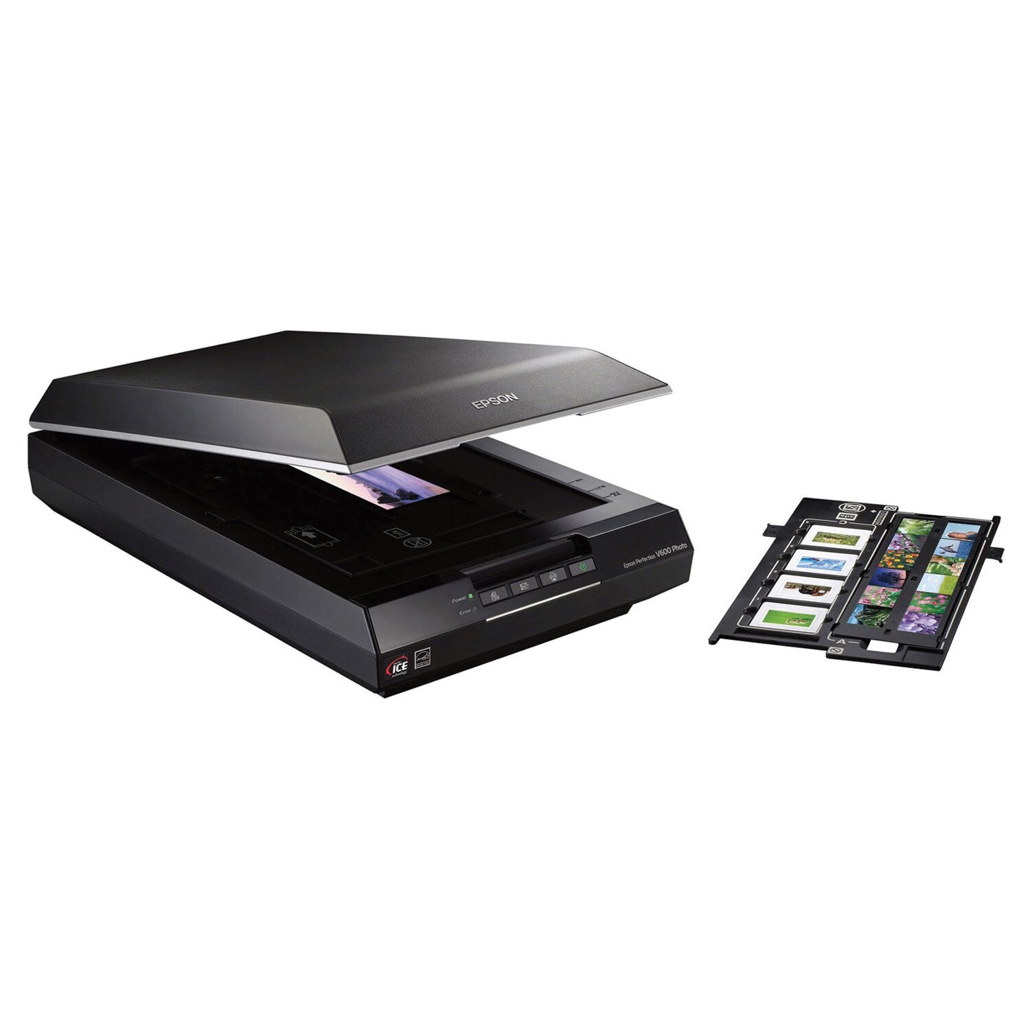 Epson Perfection V600 Photo может работать как с пленками и слайдами 35 мм, так и с пленками среднего формата. Он оснащен технологией Digital ICE™ для автоматического удаления царапин, разрывов и следов пыли с пленок и фотографий.