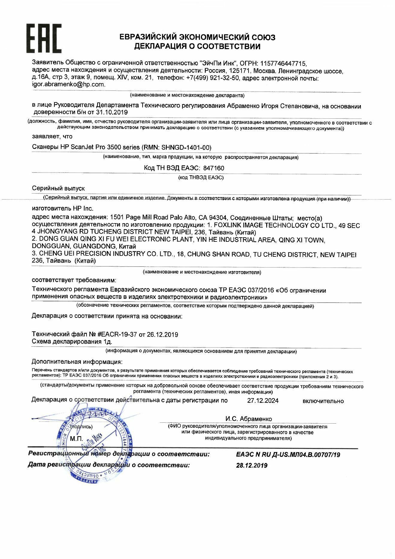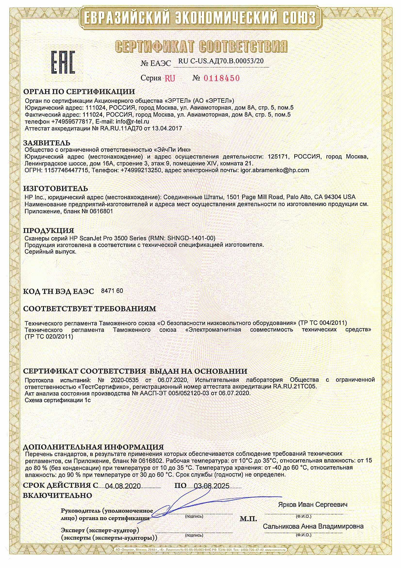 Сканер планшетный HP ScanJet Pro 3500 f1 А4, 25 стр./мин, 1200x1200, ДАПД, L2741A