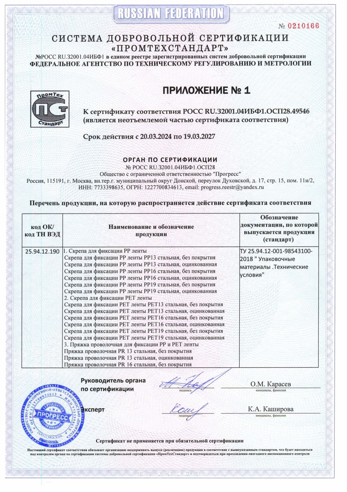| Тип | скоба (скрепа) металлическая для полипропиленовой ленты |
