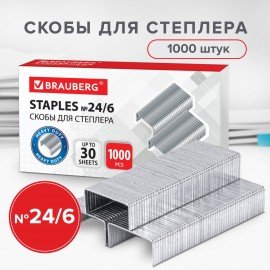 Заточенные скобы для степлера BRAUBERG размером №24/6 обеспечивают сшивание до 30 листов.