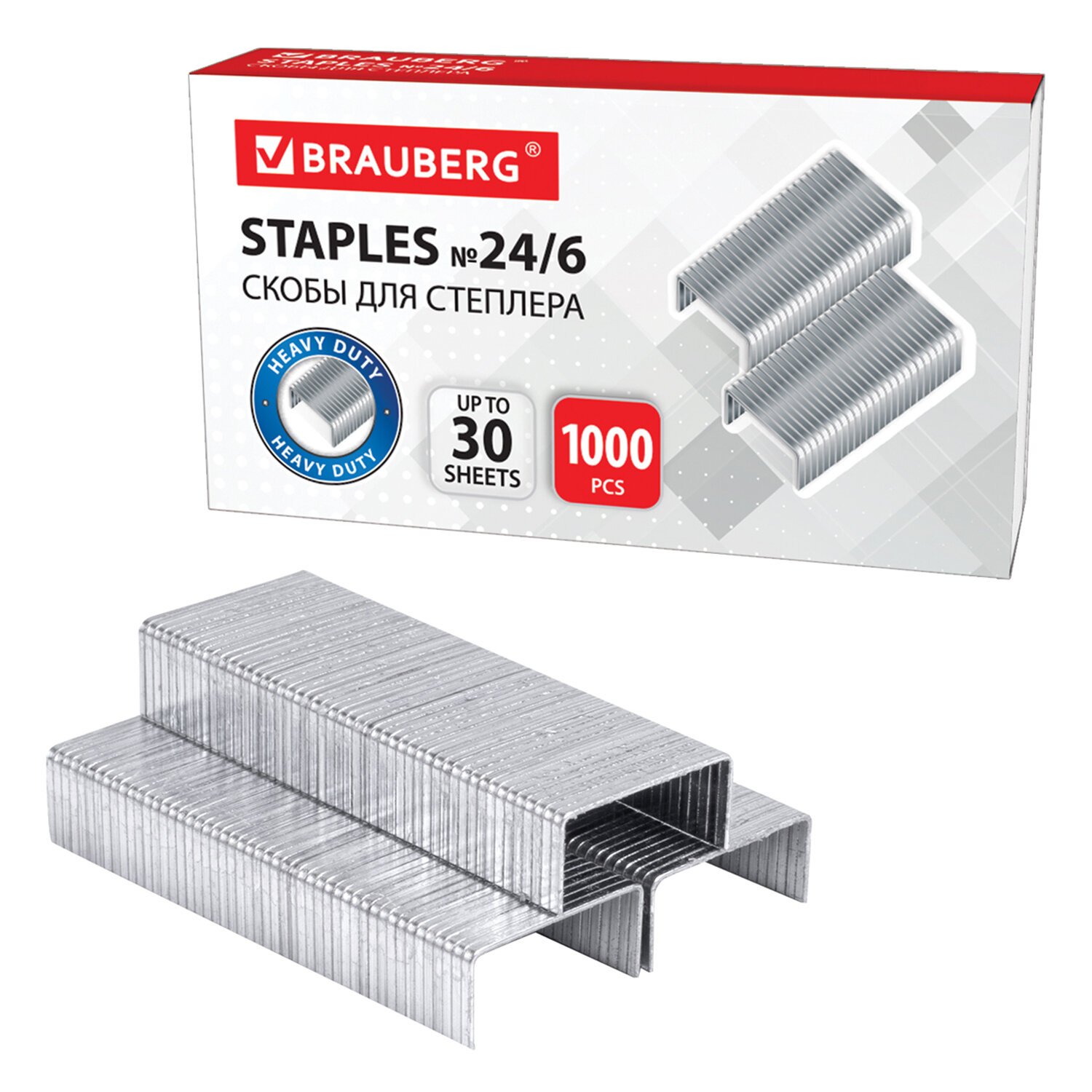 Скобы для степлера №24/6, 1000 штук, BRAUBERG, до 30 листов, 220950