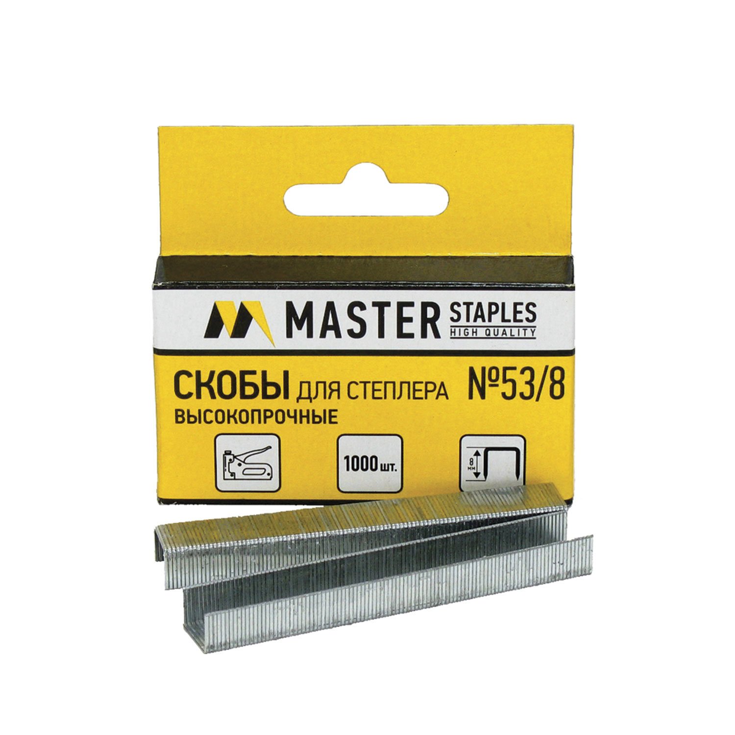 Скобы для степлера мебельного, тип 53, 8 мм, ВЫСОКОПРОЧНЫЕ, количество 1000 шт., СМ53-8Б