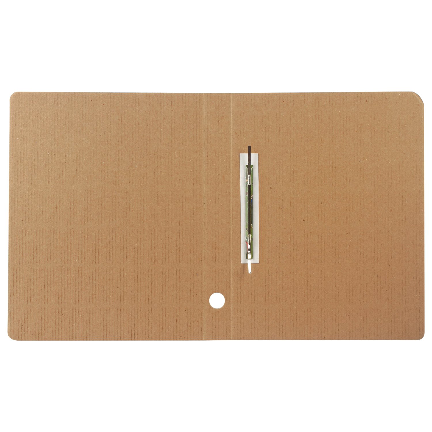 Подходит для документов формата А4 и меньше. Изготовлен из белого микрогофрокартона. Оснащен металлическим механизмом сшивания. Вмещает до 300 листов стандартной плотности. Имеет поля для подписывания на обложке. Поставляется в гофрокоробе.