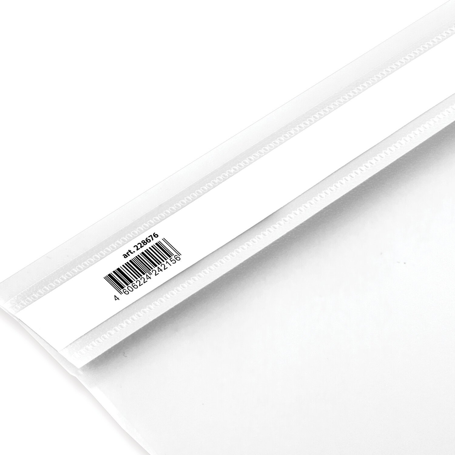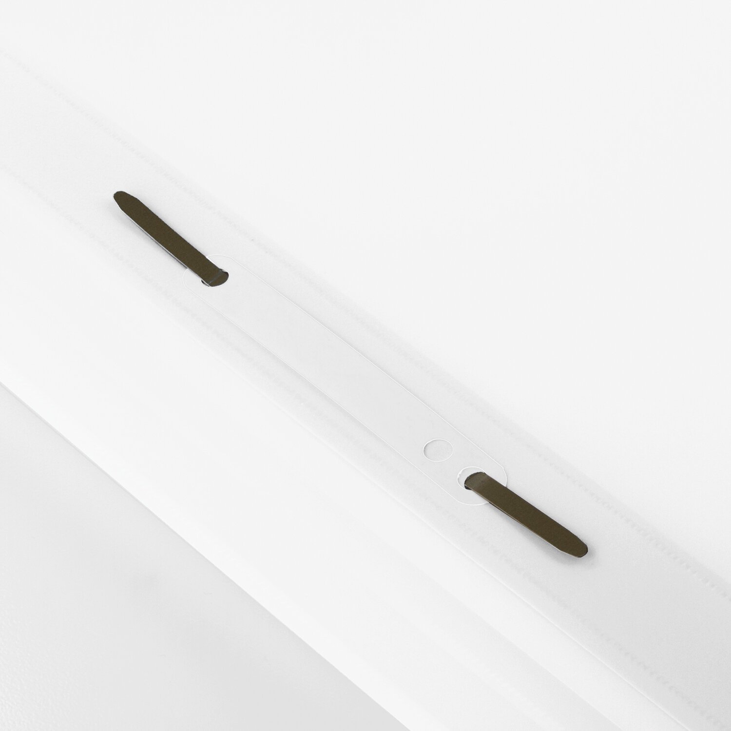 Фиксирует до 100 листов формата А4. Толщина пластика для верхнего листа - 130 мкм, для нижнего - 180 мкм. Предельно простой механизм подшивки: металлические усики и пластиковая планка для надежной фиксации документов. Скоросшиватель изготовлен из полипропилена. Снабжен прозрачным верхним листом. Для идентификации имеет сменный пластиковый корешок. Благодаря фактуре "песок" и белоснежному цвету обложки важная папка никогда не затеряется на полке.