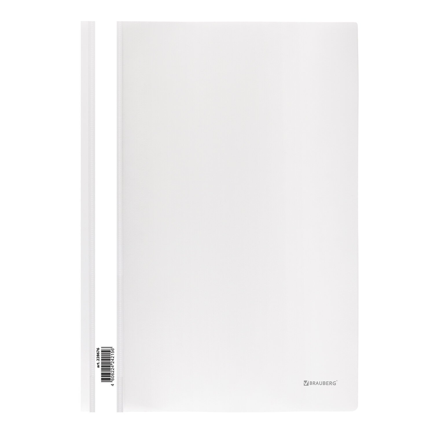 Скоросшиватель пластиковый BRAUBERG, А4, 130/180 мкм, белый, 228676