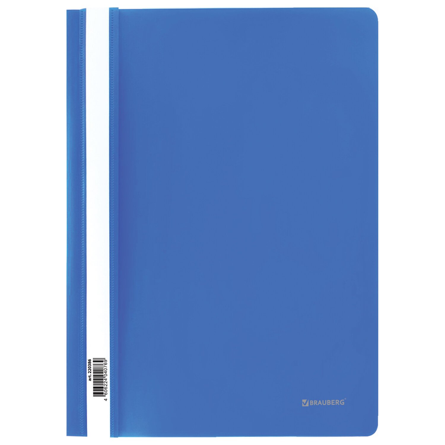 Скоросшиватель пластиковый BRAUBERG, А4, 130/180 мкм, синий, 220385