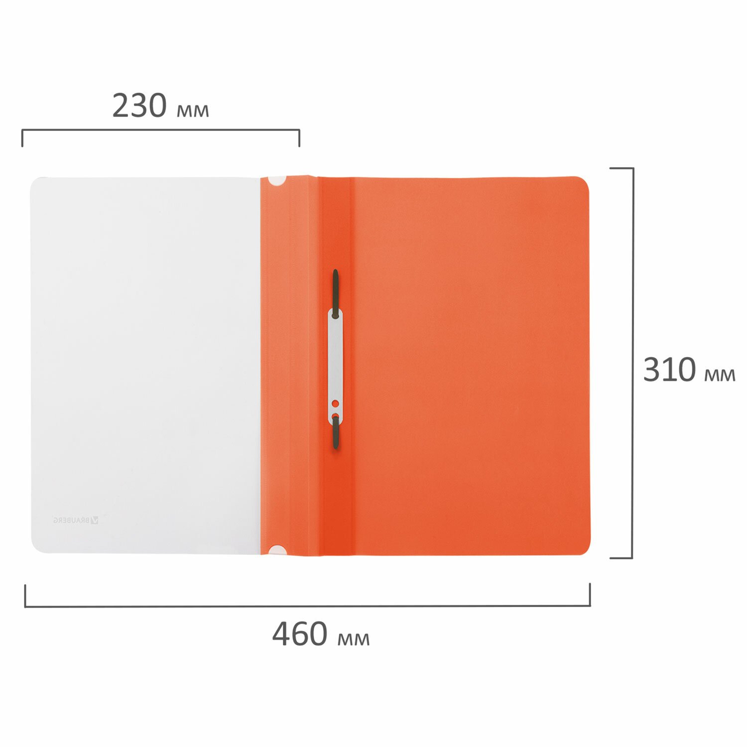 Скоросшиватель пластиковый BRAUBERG, А4, 130/180 мкм, оранжевый, 228673