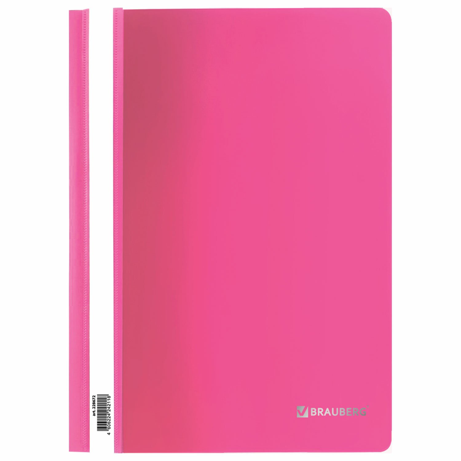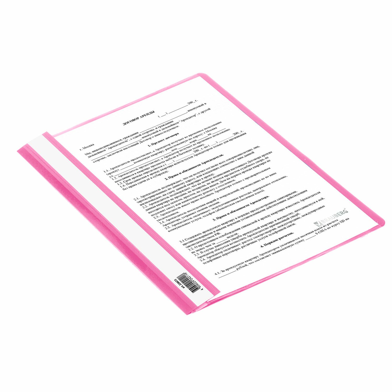 Скоросшиватель пластиковый BRAUBERG, А4, 130/180 мкм, розовый, 228672