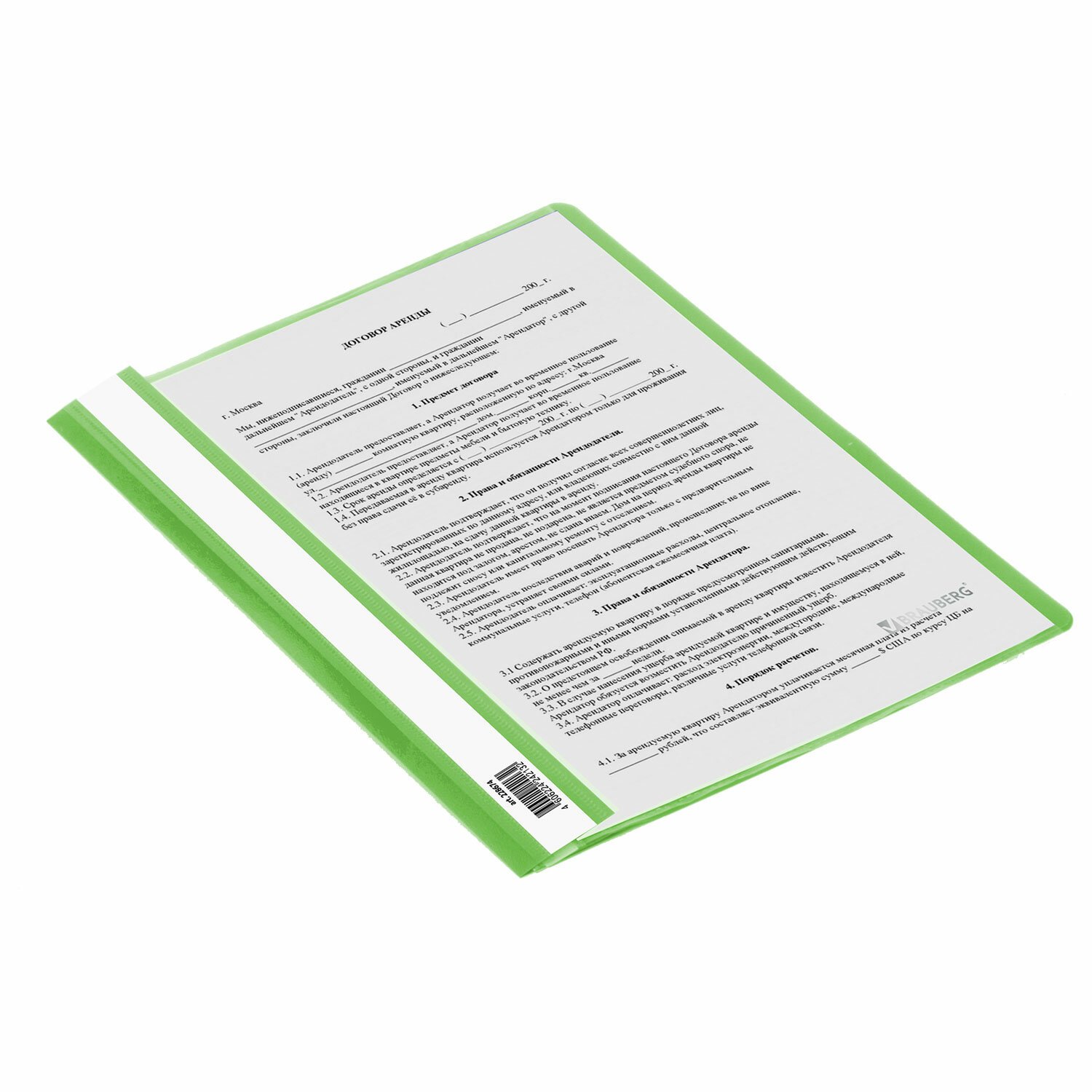 Скоросшиватель пластиковый BRAUBERG, А4, 130/180 мкм, салатовый, 228674