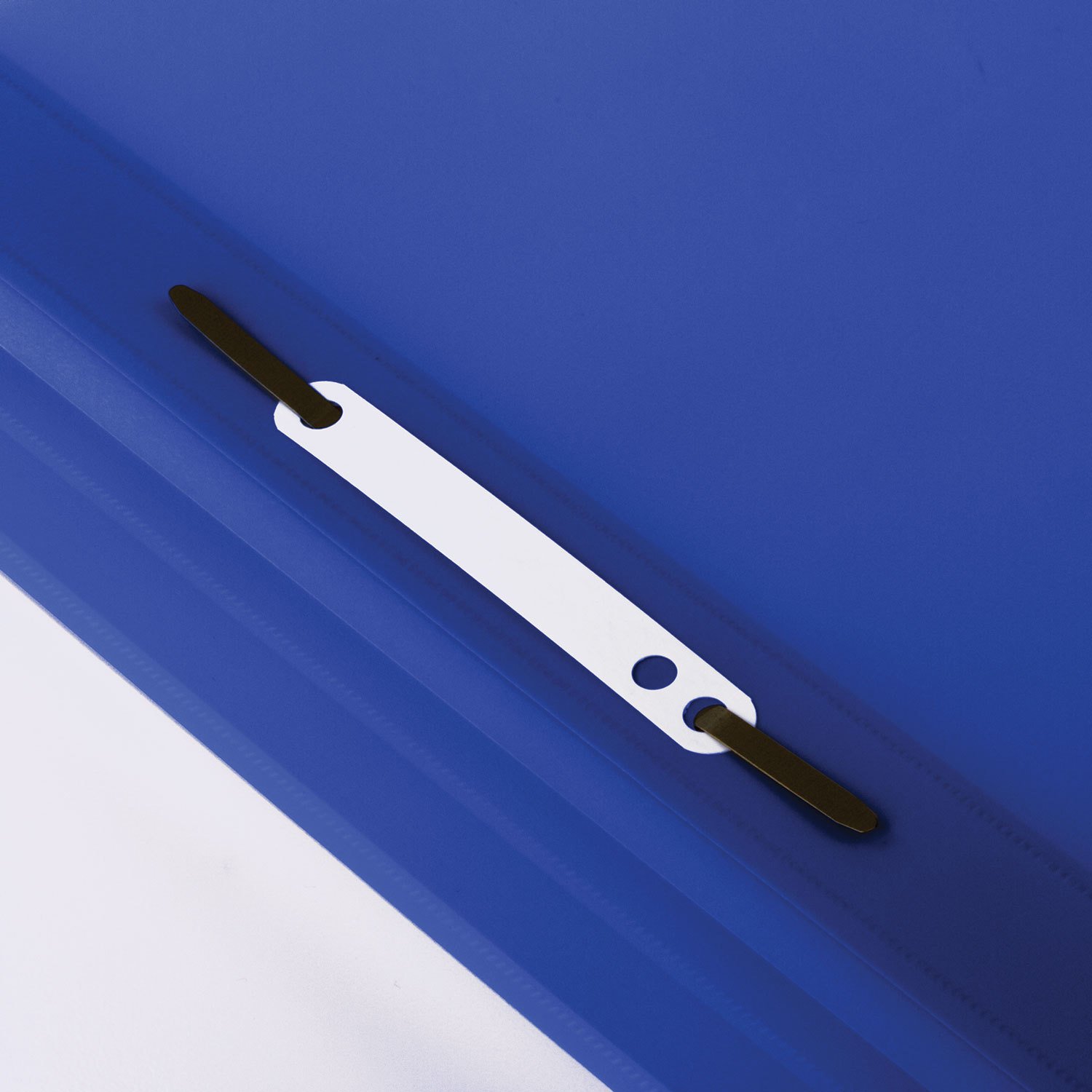 Фиксирует до 100 листов формата А4. Толщина пластика верхнего листа составляет 130 мкм, а нижнего - 180 мкм. Предельно простой механизм подшивки: металлические усики и пластиковая планка для надежной фиксации документов. Скоросшиватель изготовлен из качественного полипропилена. Прозрачный верхний лист позволяет определить содержимое, не открывая скоросшиватель, который к тому же снабжен сменным пластиковым корешком, что дает возможность структурировать информацию. Благодаря фактуре "песок" и насыщенному синему цвету обложки ваша папка никогда не затеряется на полке.