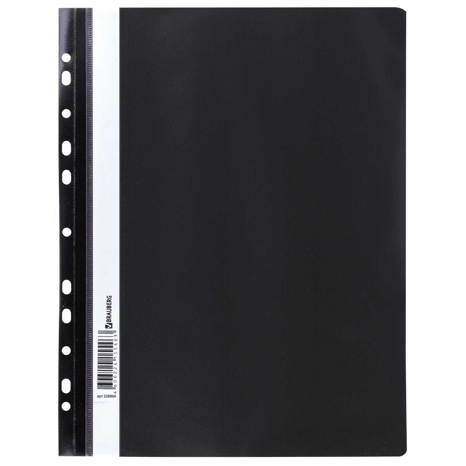Скоросшиватель пластиковый с перфорацией BRAUBERG, А4, 140/180 мкм, черный, 226586