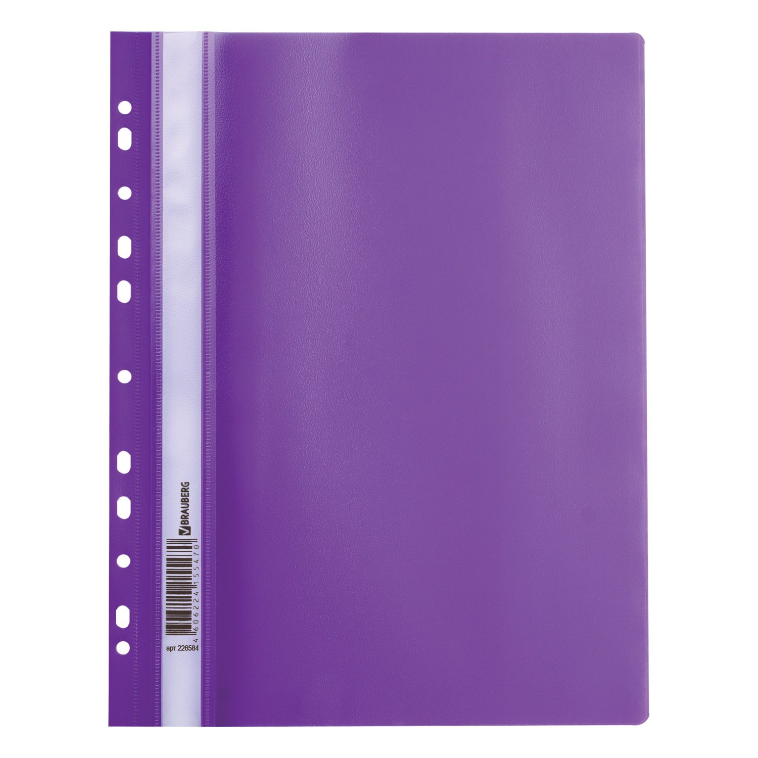 Скоросшиватель пластиковый с перфорацией BRAUBERG, А4, 140/180 мкм, фиолетовый, 226584