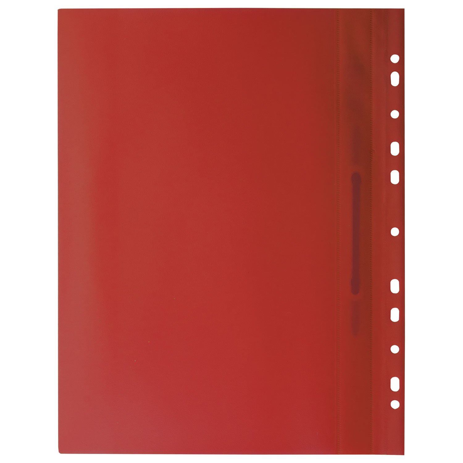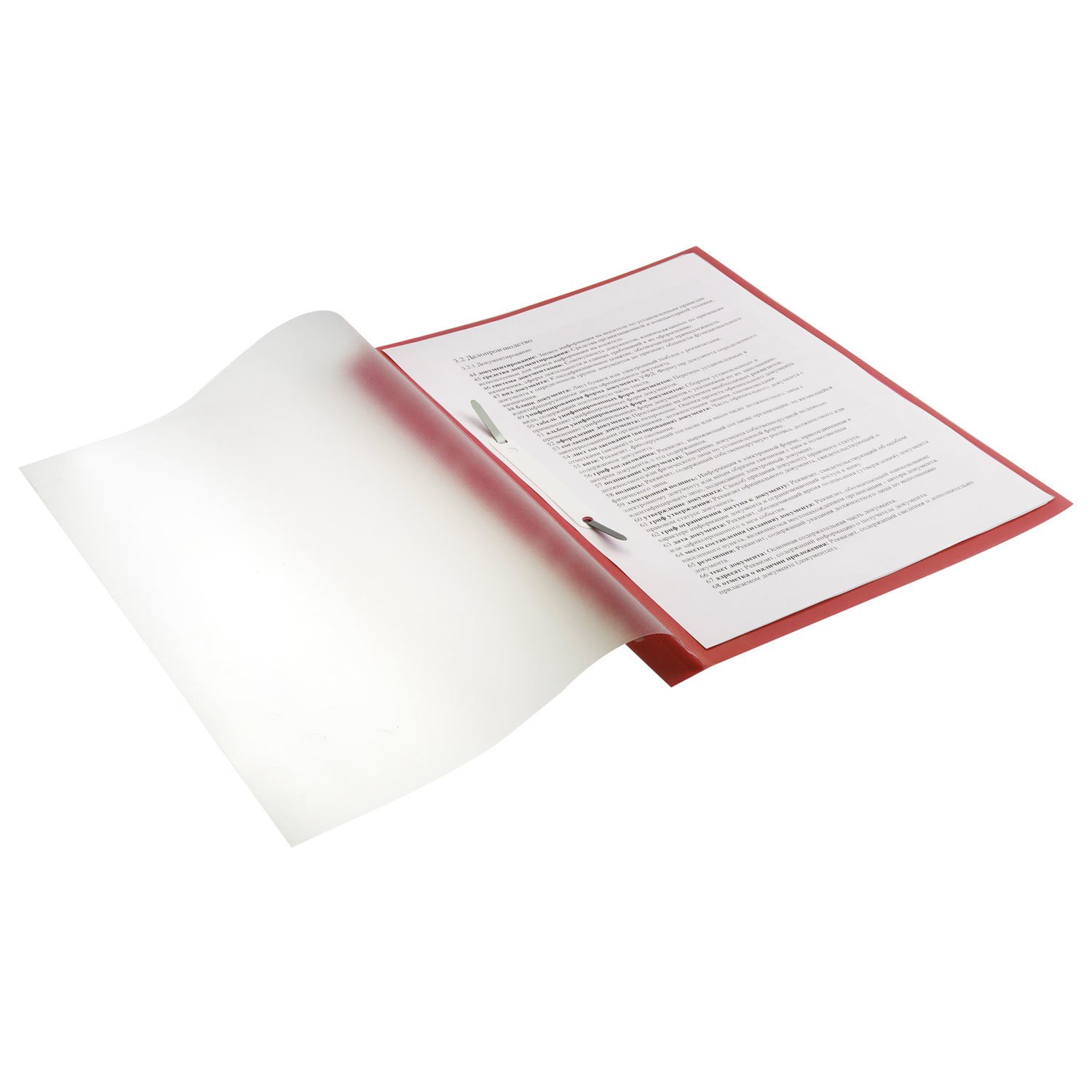 Фиксирует до 100 листов формата А4. Толщина пластика верхнего листа составляет 140 мкм, а нижнего - 180 мкм. Предельно простой механизм подшивки: металлические усики и пластиковая планка для надежной фиксации документов. Мультиперфорация по краю обложки позволяет подшивать изделие в папки с любым механизмом. Скоросшиватель изготовлен из качественного полипропилена. Прозрачный верхний лист позволяет определить содержимое, не открывая скоросшиватель, который к тому же снабжен сменным пластиковым корешком, что дает возможность структурировать информацию. Благодаря фактуре "песок" и яркому красному цвету обложки папка никогда не затеряется на полке.